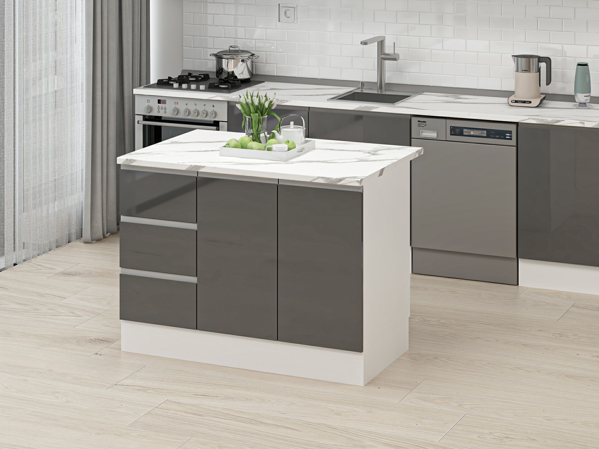 Alvinka 120 Cm Hg_J Ada Mutfak Dolabı Beyaz Antrasit