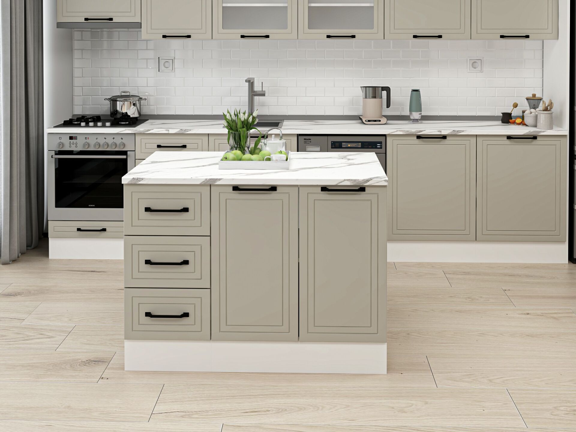 Alvinka 120 Cm Mbr_A Ada Mutfak Dolabı Beyaz Kumtaşı