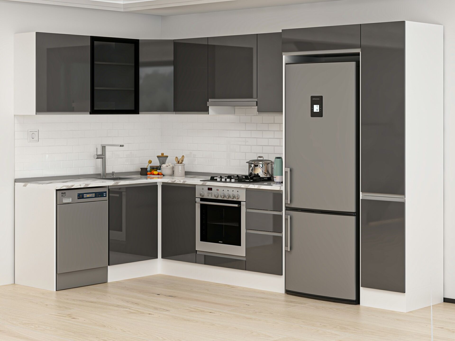 Alvinka 180-330X222 Cm Hg_J Köşe Mutfak Dolabı Antrasit - Mdf