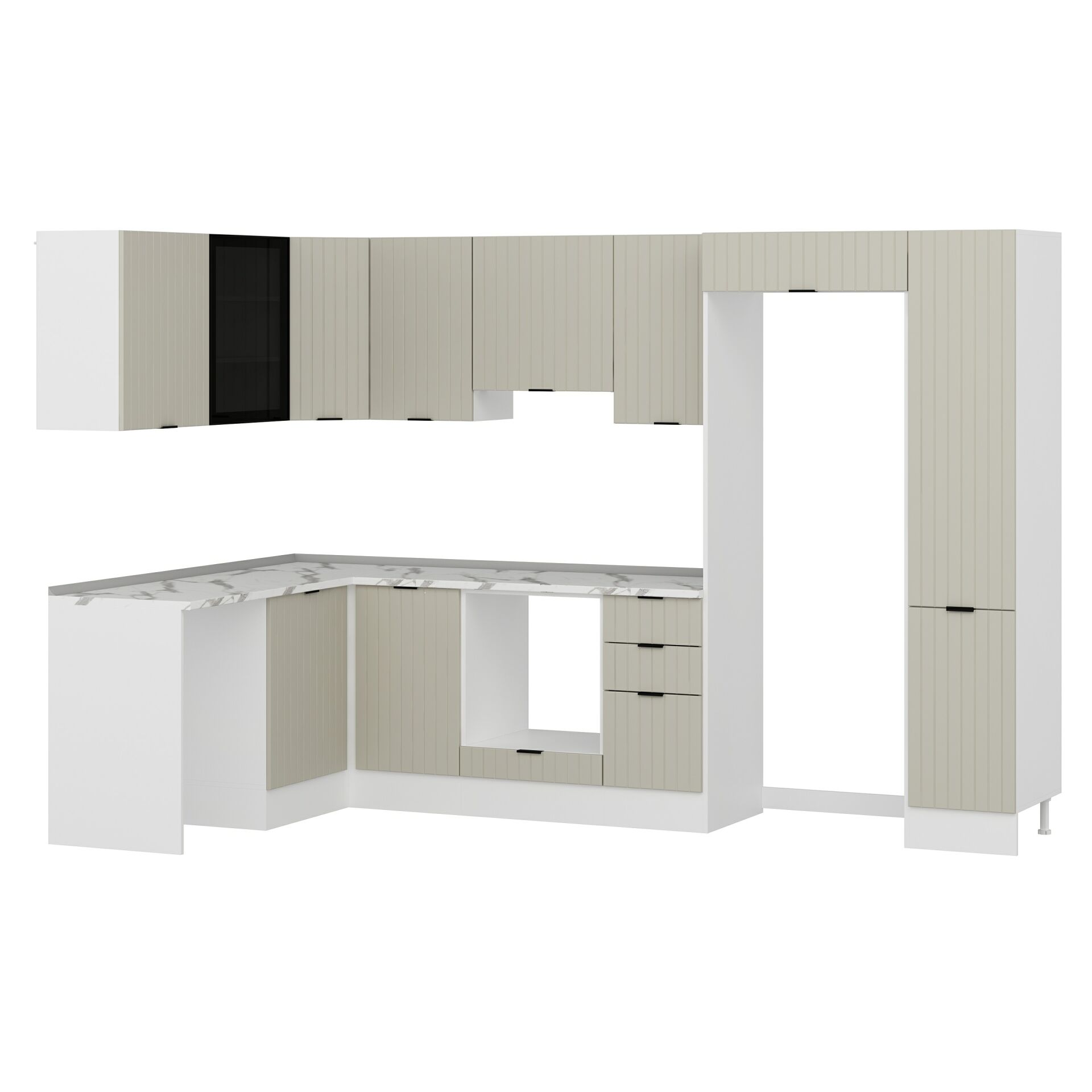 Alvinka 180-330X222 Cm Mbr_B Köşe Mutfak Dolabı Kumtaşı - Suntalam