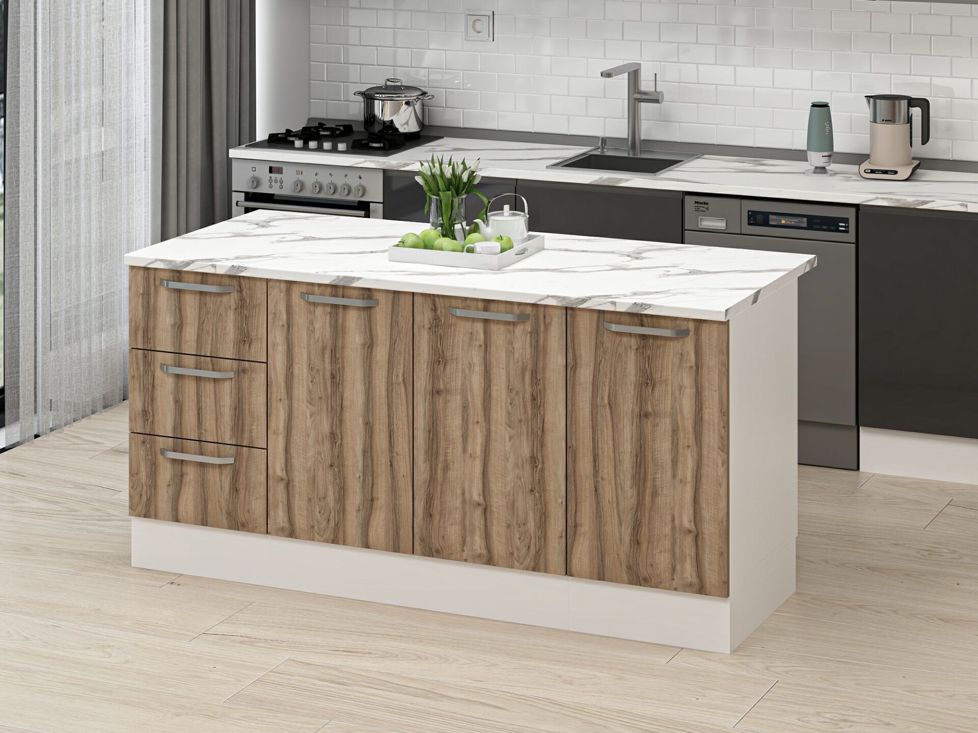 Alvinka 180 Cm Düz Ada Mutfak Dolabı Beyaz Dore