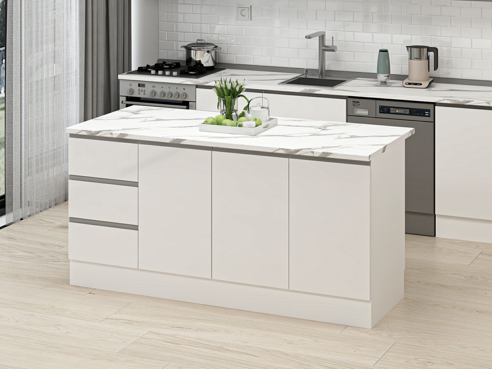 Alvinka 180 Cm Hg_J Ada Mutfak Dolabı Beyaz Beyaz