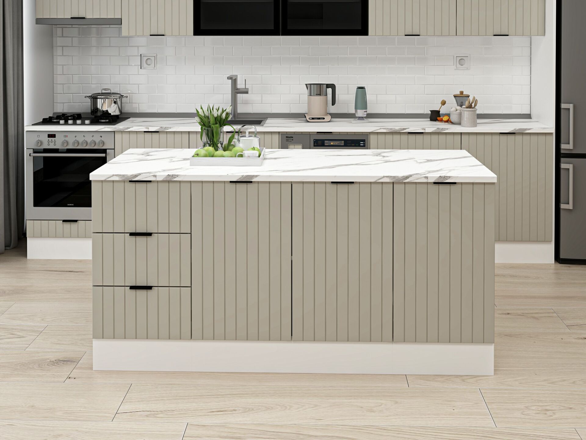 Alvinka 180 Cm Mbr_B Ada Mutfak Dolabı Beyaz Kumtaşı