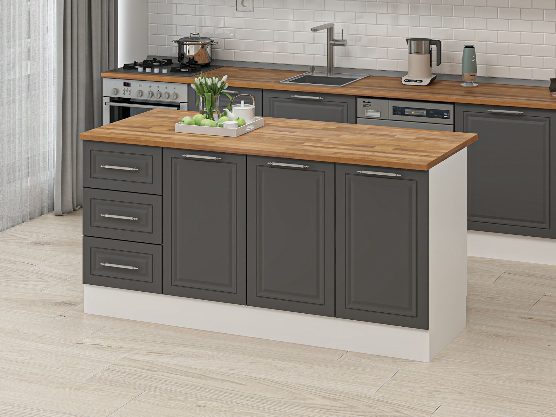 180 cm Genişlik: Geniş mutfaklarda maksimum depolama ve kullanım alanı sağlar.