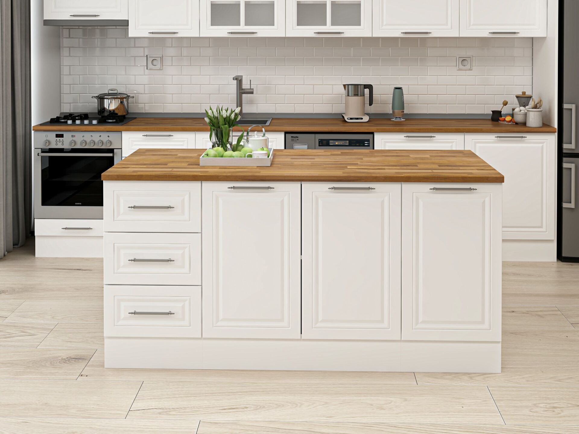 Alvinka 180 Cm Mbr_C Ada Mutfak Dolabı Beyaz Beyaz Mdf