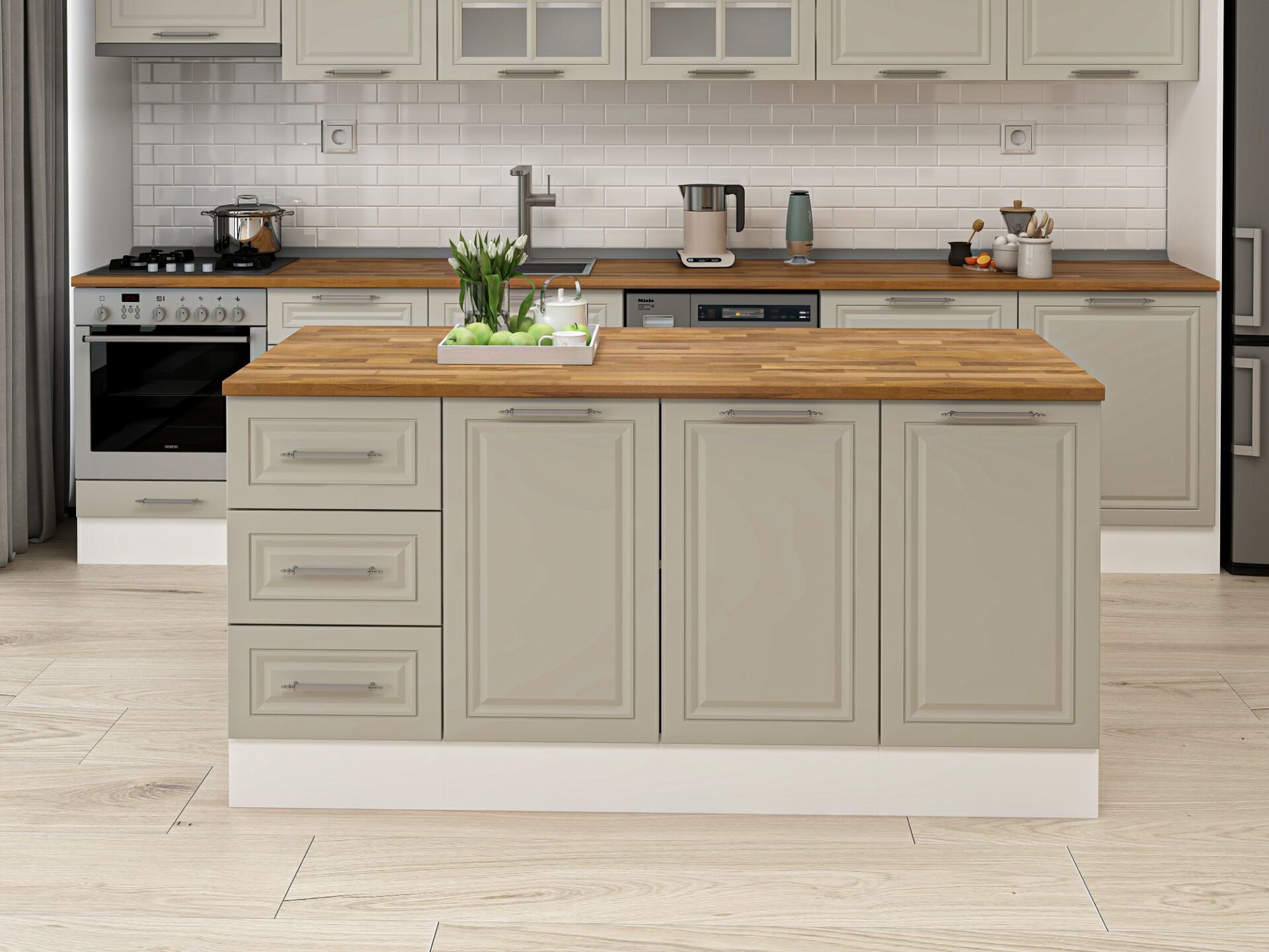 Alvinka 180 Cm Mbr_C Ada Mutfak Dolabı Beyaz Kumtaşı Suntalam