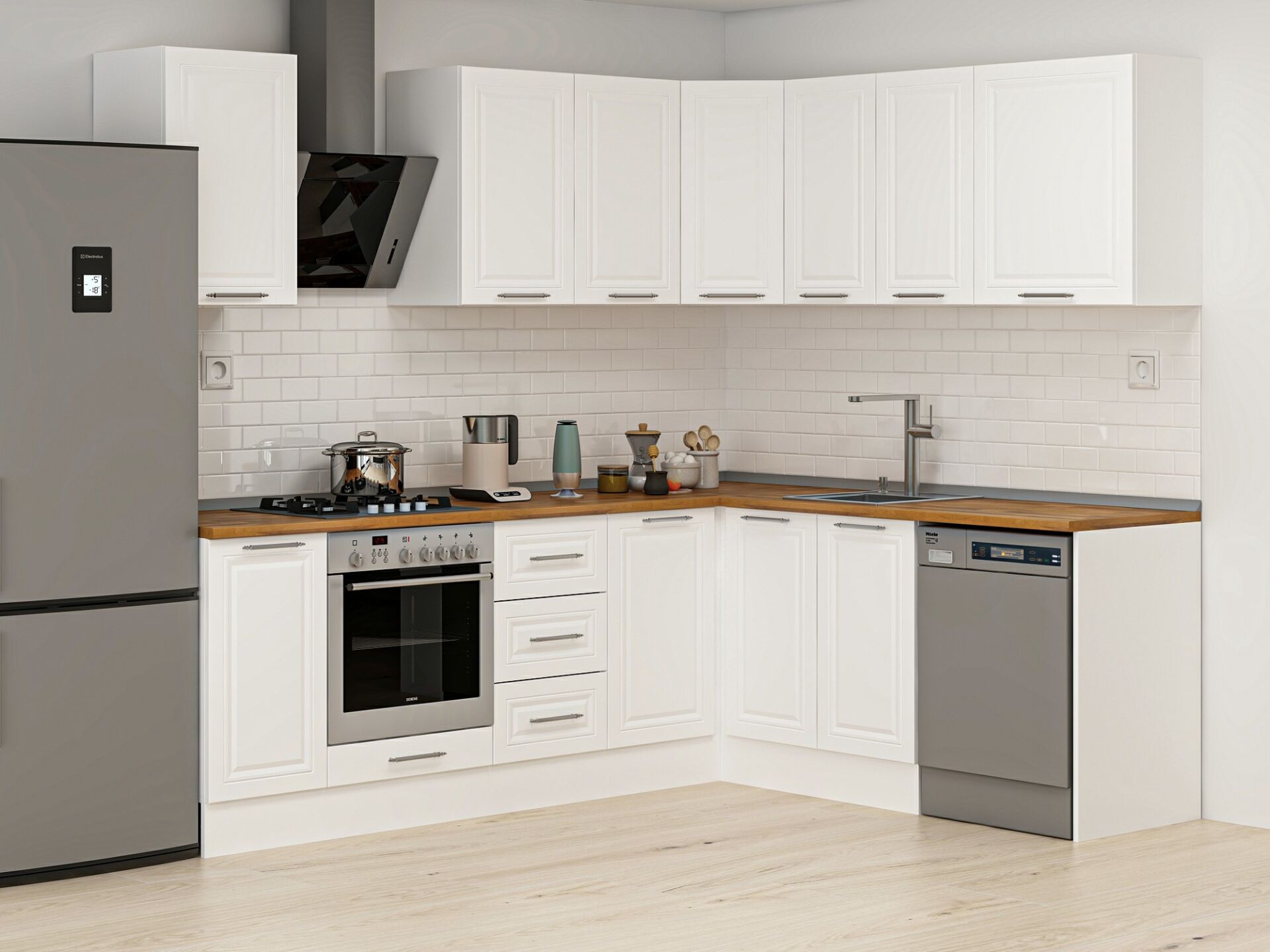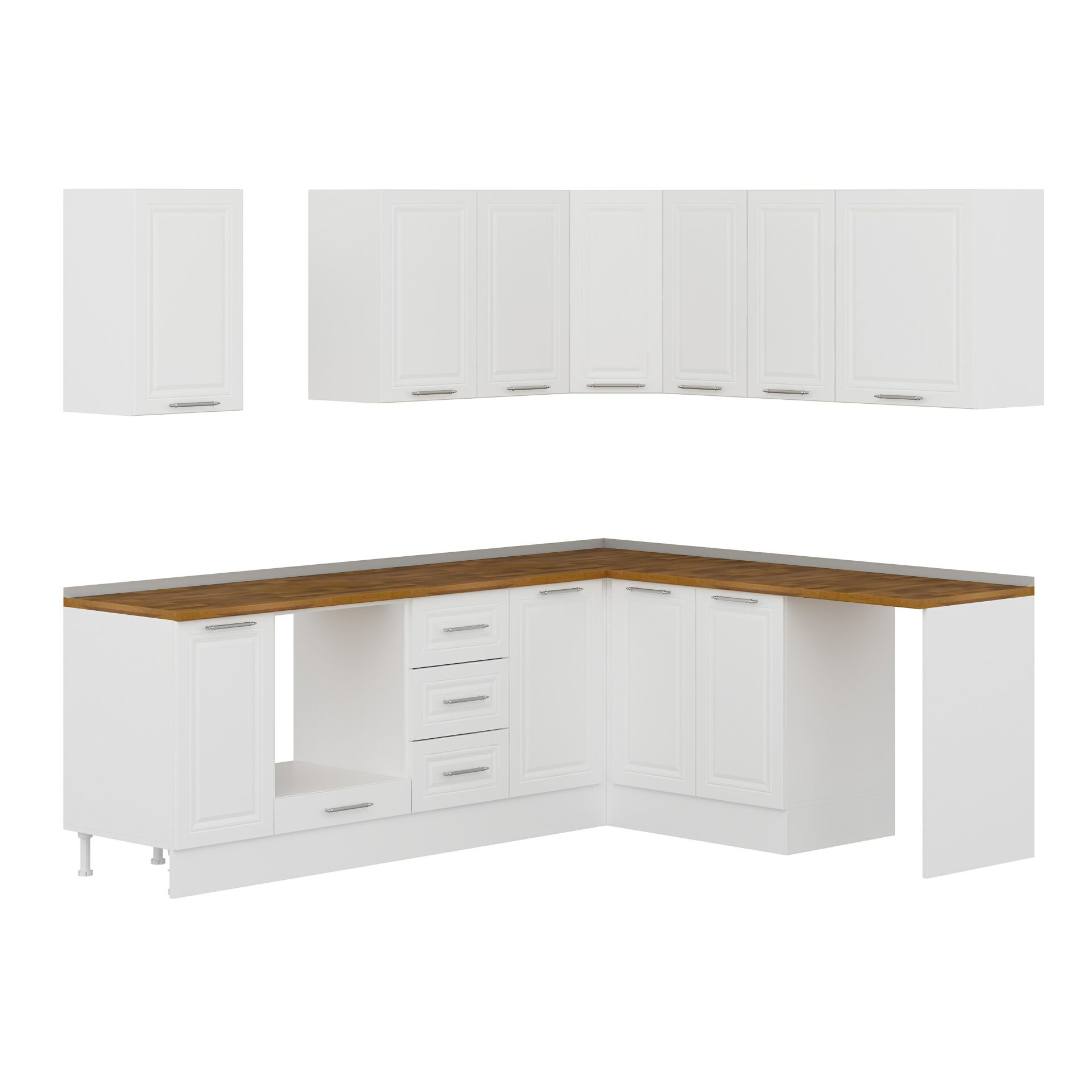 Alvinka 250-200X222 Cm Mbr_C Köşe Mutfak Dolabı Beyaz - Mdf