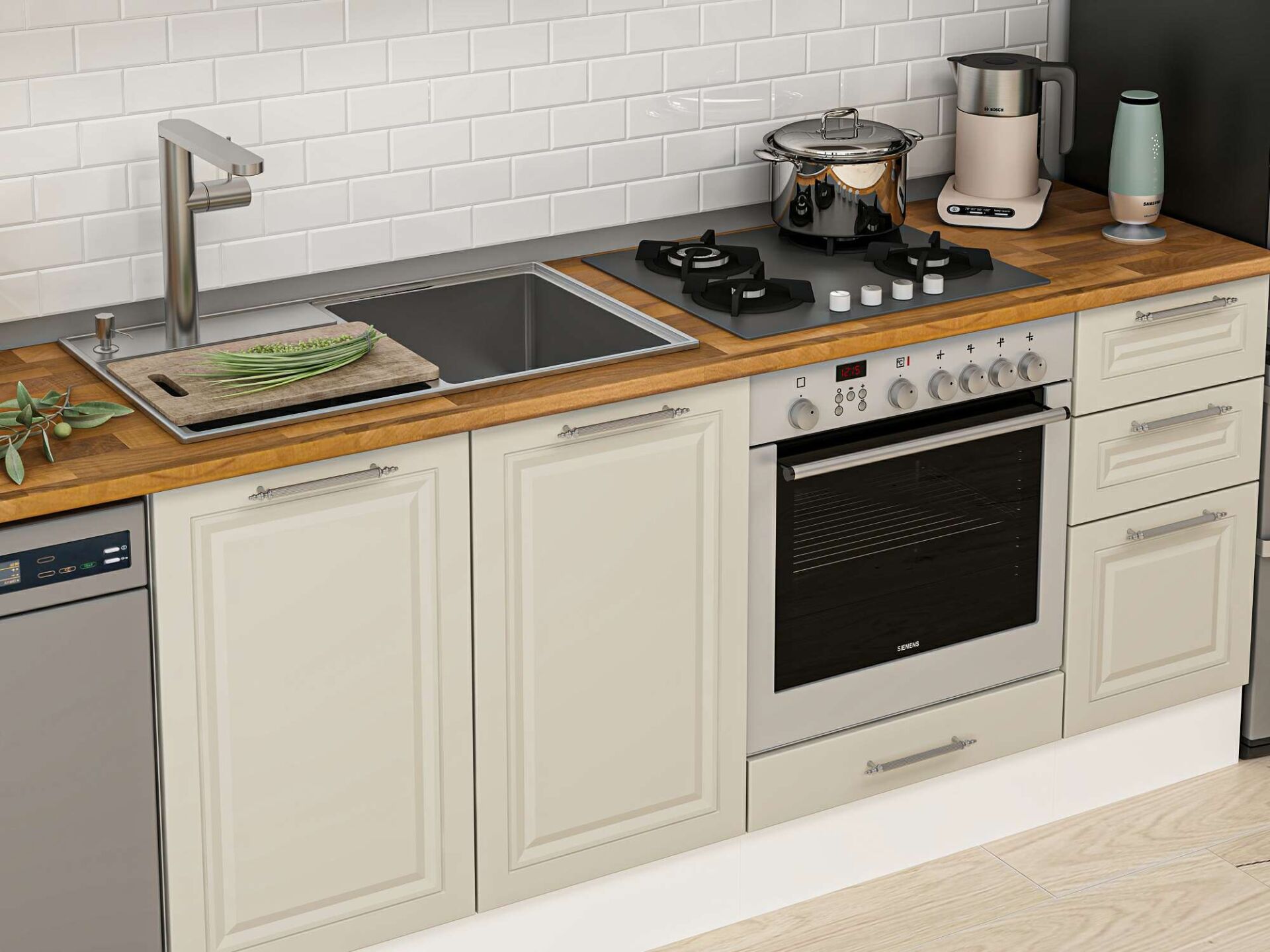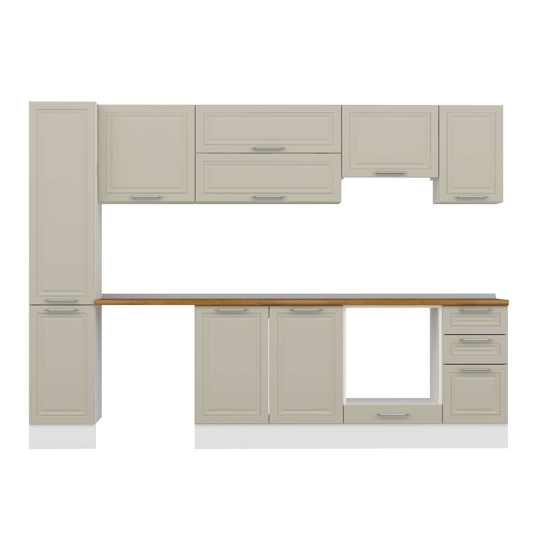 Alvinka 280X210 Cm Klasik Mebran Mutfak Dolabı Mb-E80B40S40-1 Mebran | Kumtaşı - Mdf