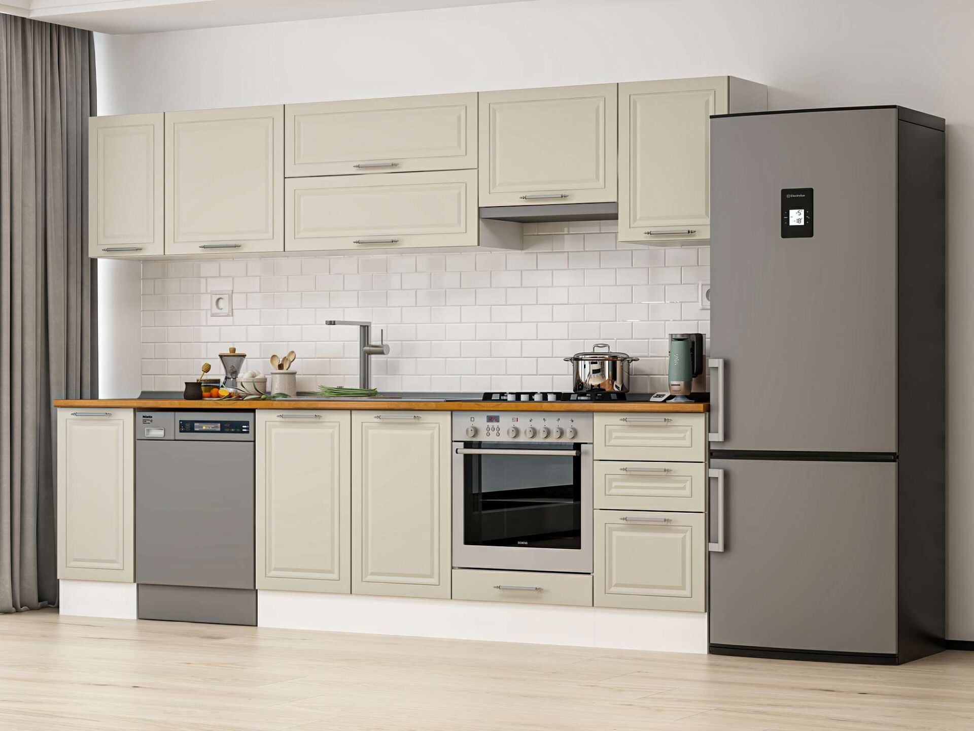 Alvinka 285X210 Cm Klasik Mebran Mutfak Dolabı M-E80S40S45-1 Mebran | Kumtaşı - Mdf