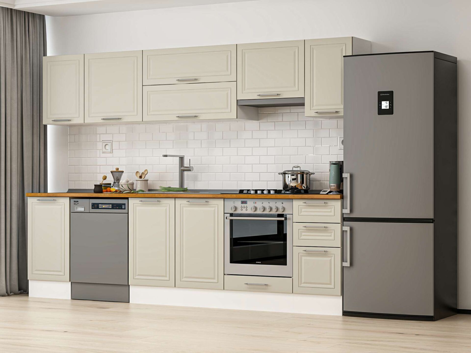 Alvinka 285X210 Cm Klasik Mebran Mutfak Dolabı M-E80S45S40-1 Mebran | Kumtaşı - Suntalam