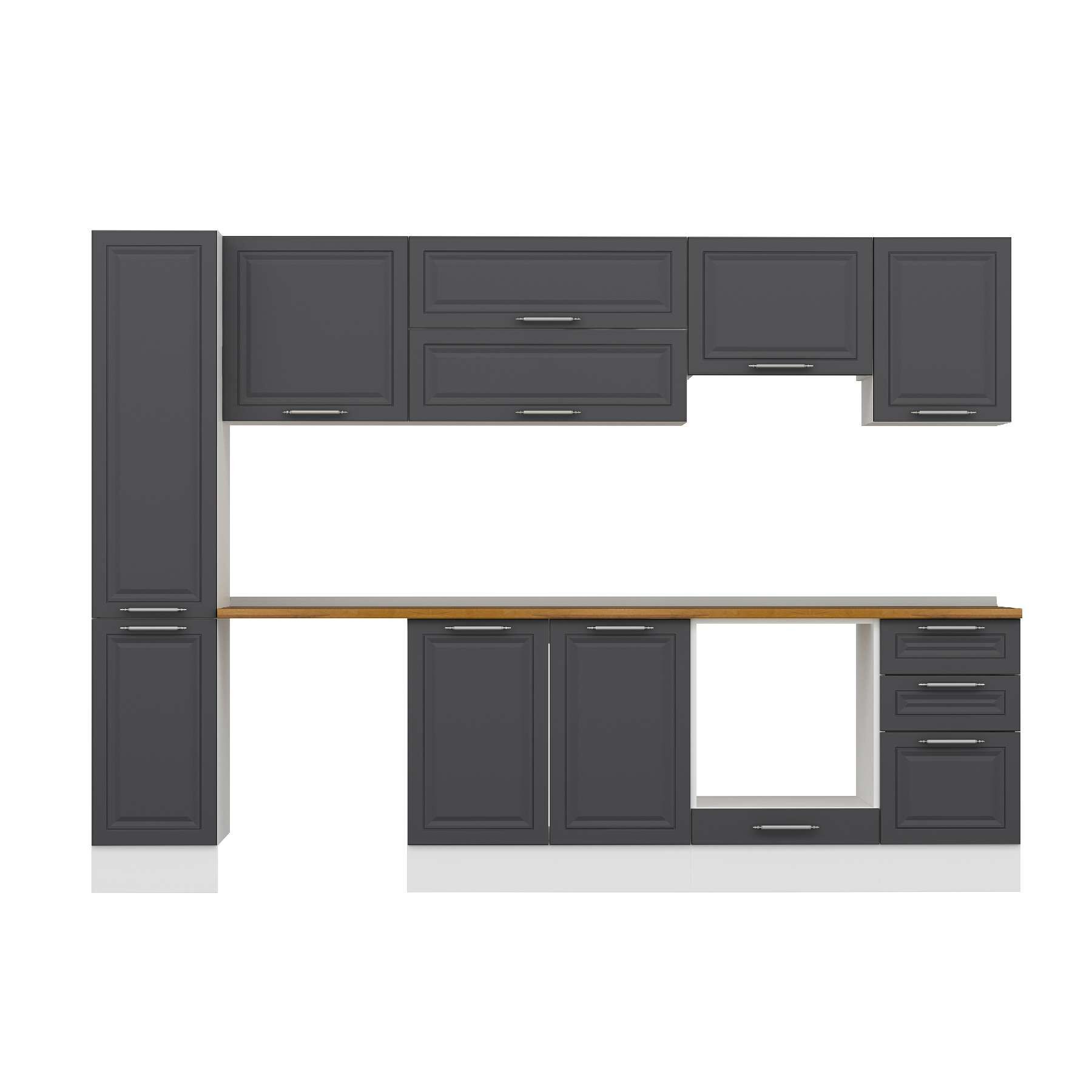 Alvinka 285X210 Cm Klasik Mebran Mutfak Dolabı Mb-E80B40S45-1 Mebran | Antrasit - Suntalam