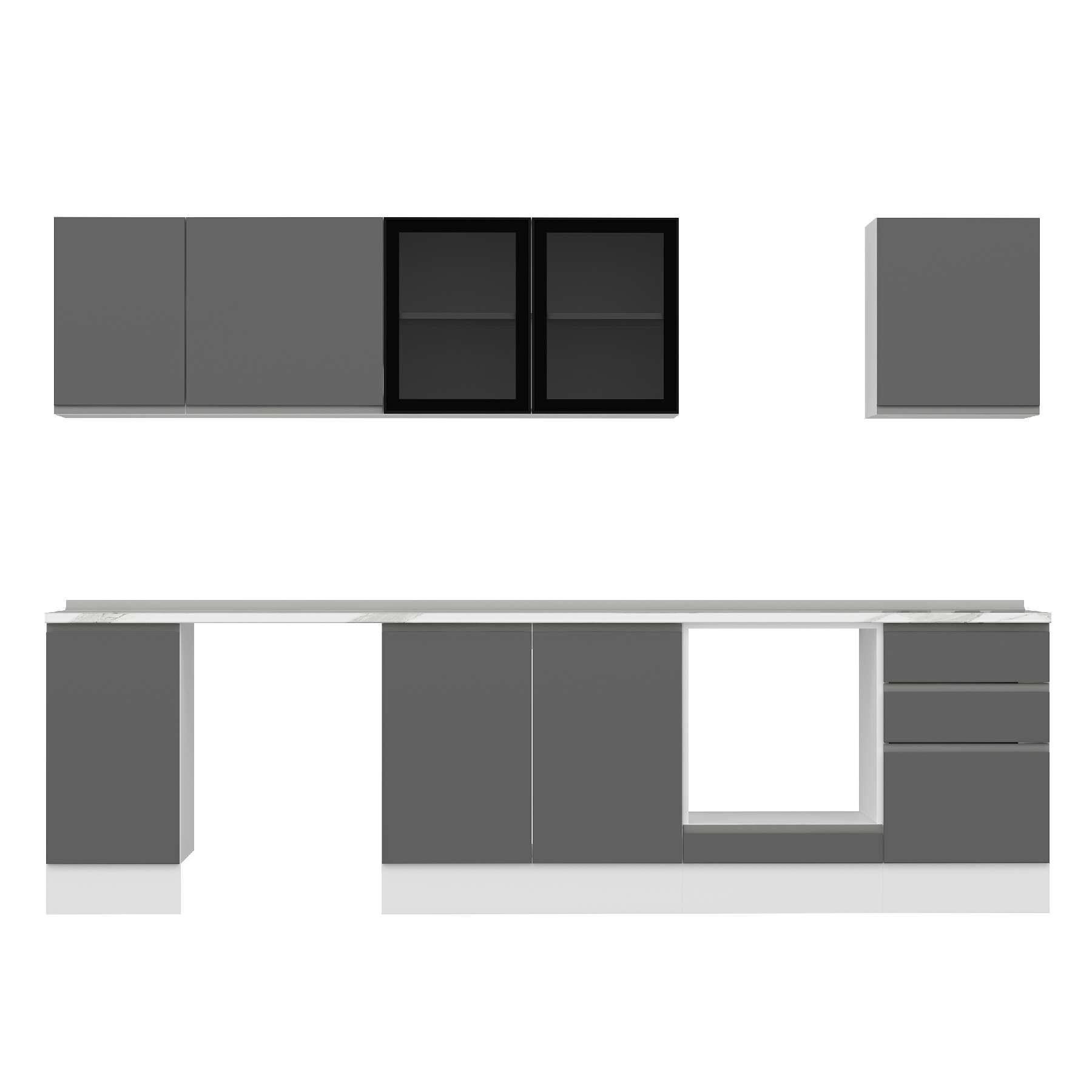 Alvinka 290X210 Cm High Gloss Mutfak Dolabı M-E80S40S50-3 High Gloss | Antrasit - Suntalam