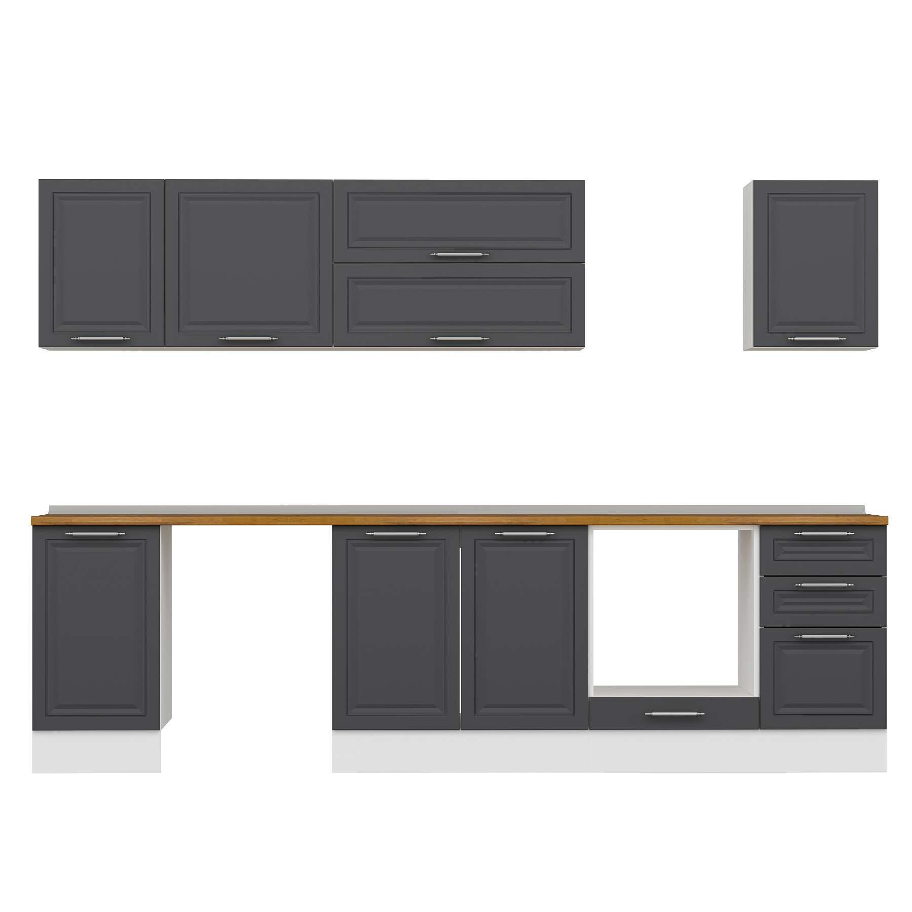 Alvinka 290X210 Cm Klasik Mebran Mutfak Dolabı M-E80S45S45-2 Mebran | Antrasit - Suntalam
