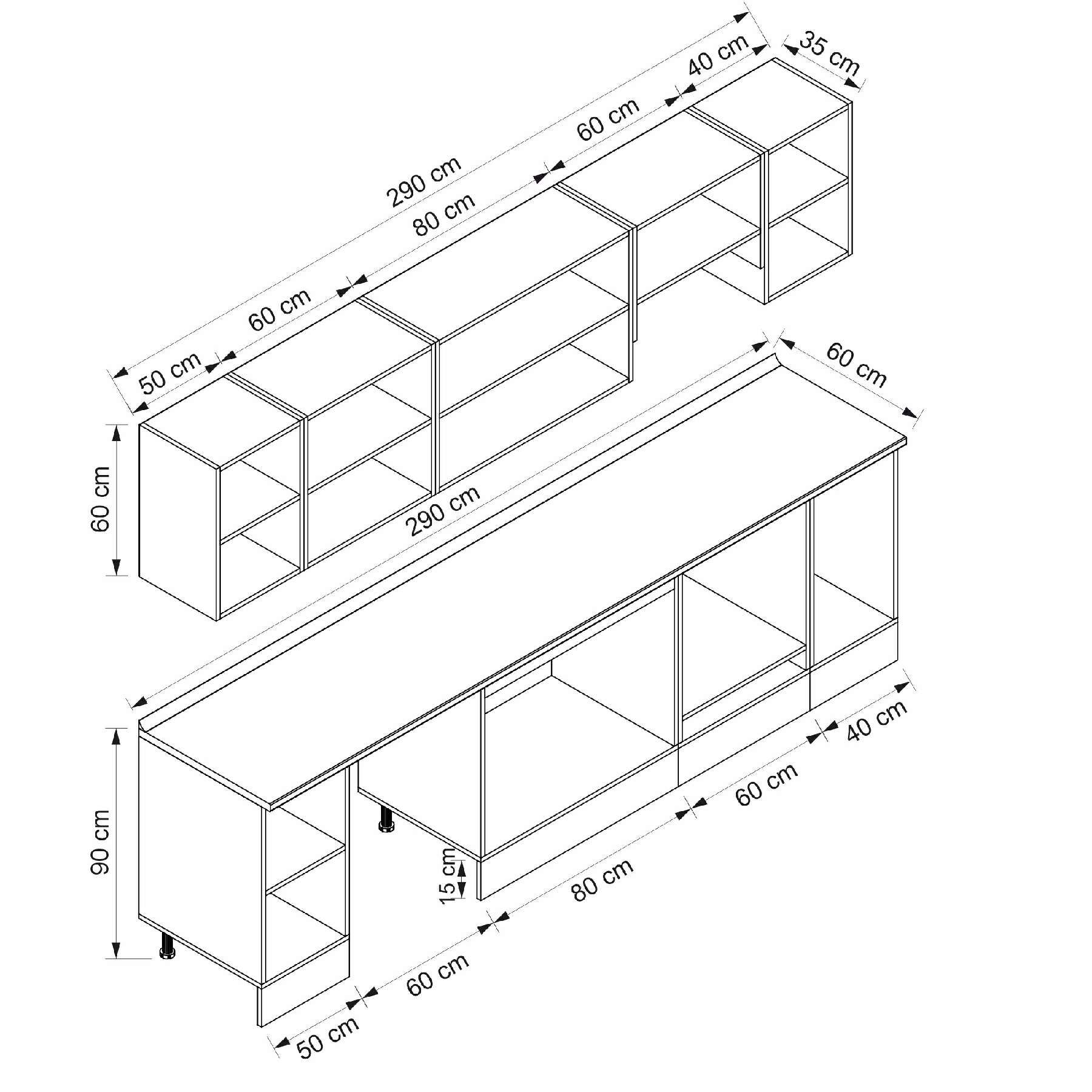 Alvinka 290X210 Cm Klasik Mebran Mutfak Dolabı M-E80S50S40-1