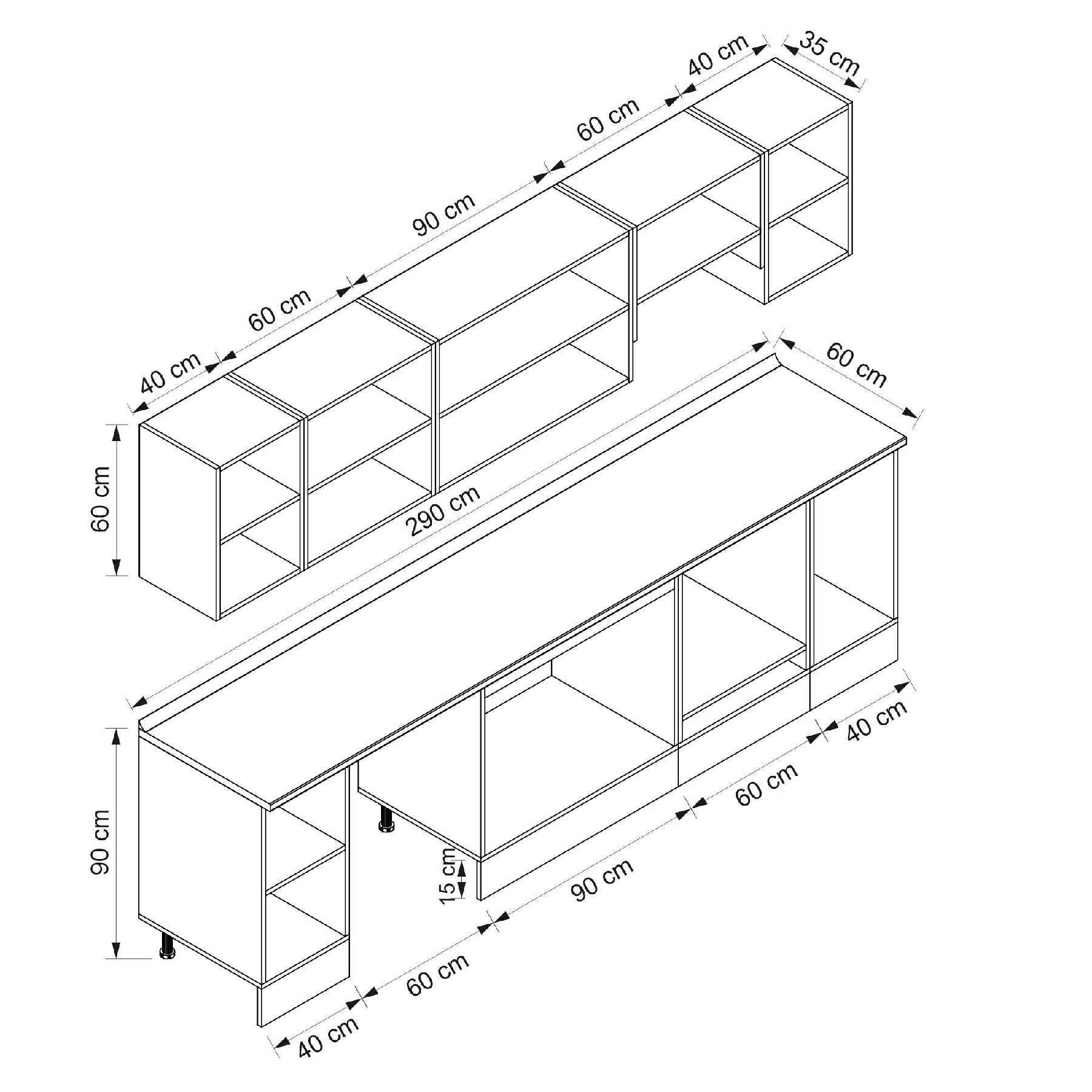 Alvinka 290X210 Cm Klasik Mebran Mutfak Dolabı M-E90S40S40-1