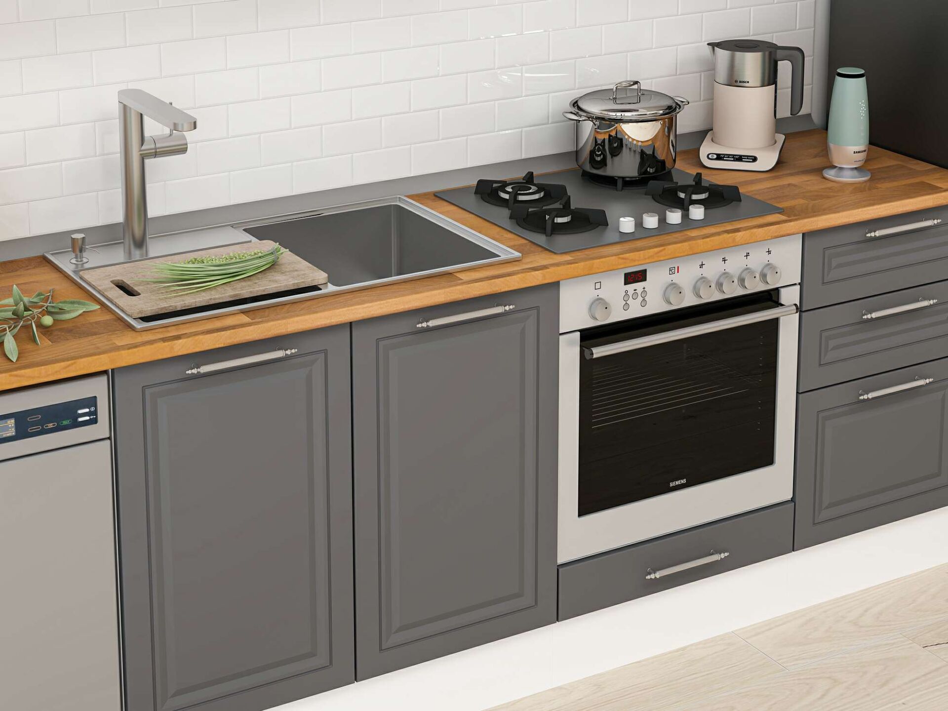 Alvinka 290X210 Cm Klasik Mebran Mutfak Dolabı Mb-E80B40S50-3 Mebran | Antrasit - Suntalam
