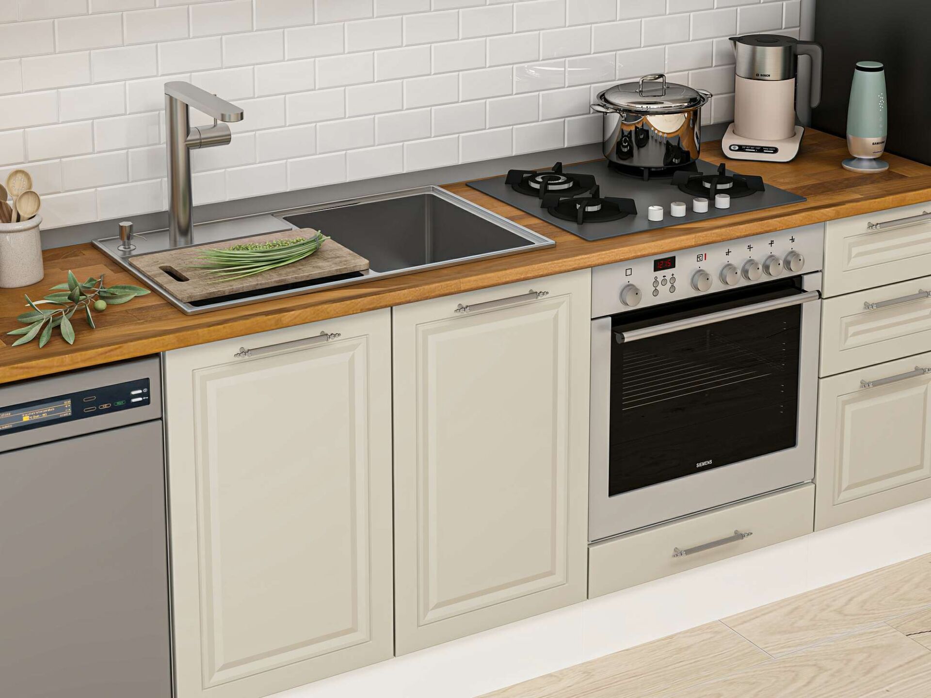 Alvinka 290X210 Cm Klasik Mebran Mutfak Dolabı Mb-E80B50S40-2 Mebran | Kumtaşı - Mdf