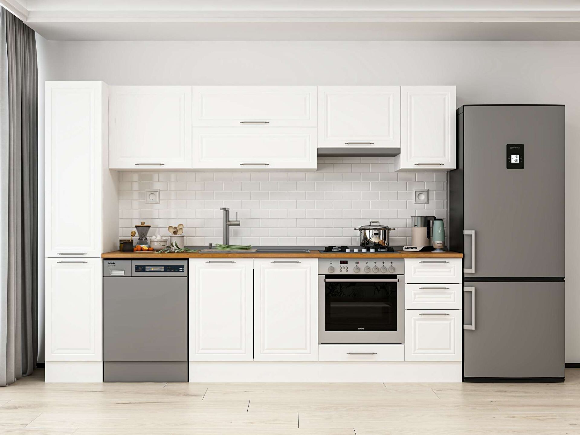 Alvinka 290X210 Cm Klasik Mebran Mutfak Dolabı Mb-E90B40S40-1 Mebran | Beyaz - Mdf