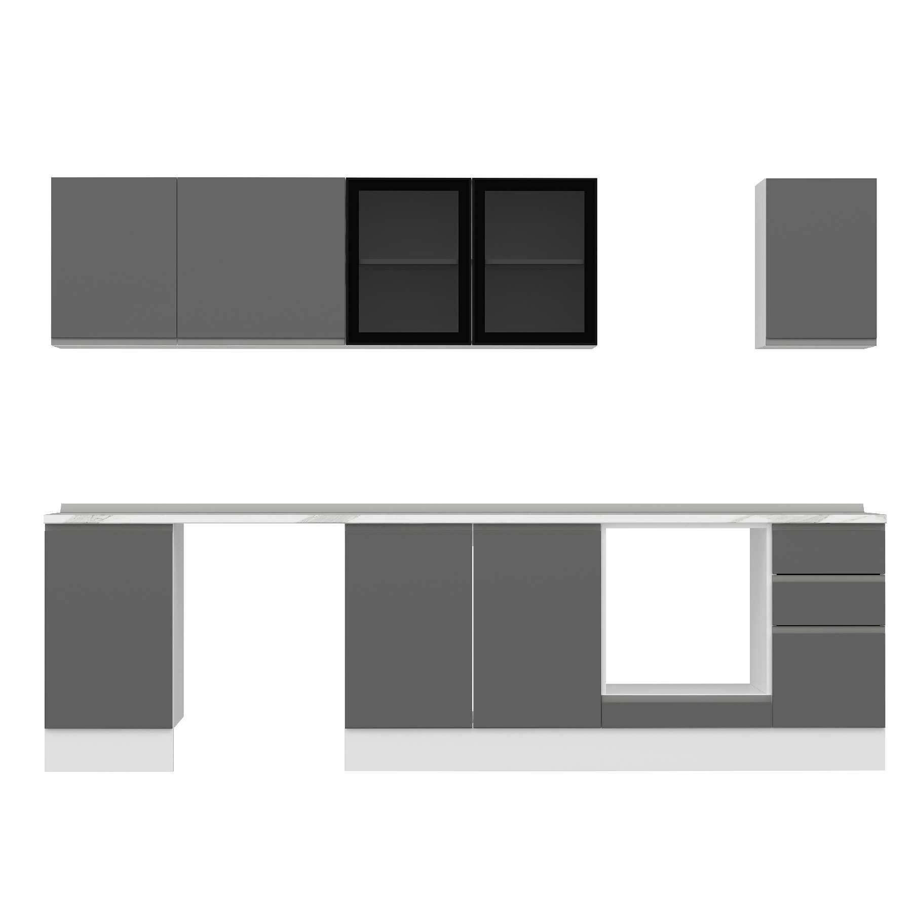 Alvinka 295X210 Cm High Gloss Mutfak Dolabı M-E90S45S40-3 High Gloss | Antrasit - Suntalam