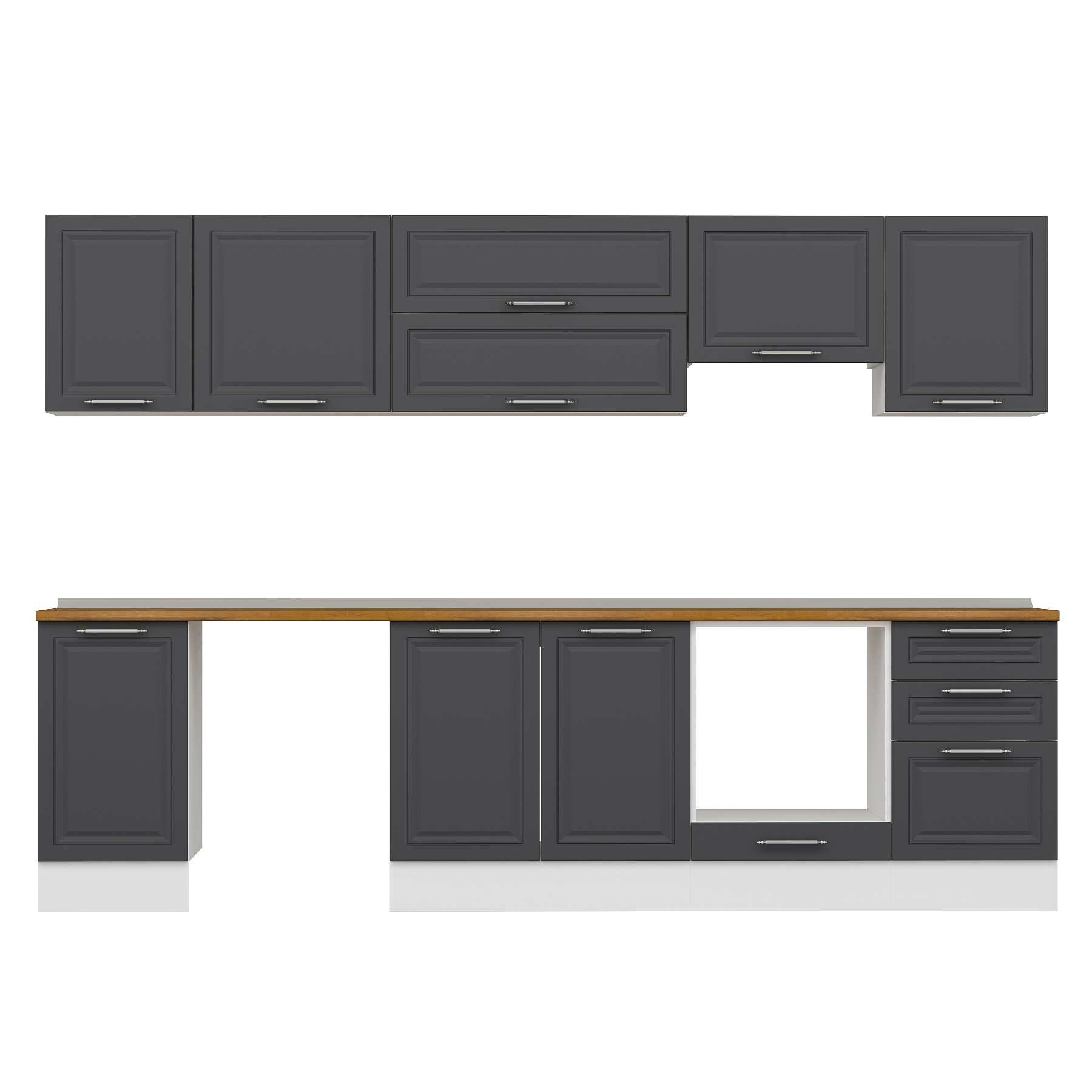 Alvinka 295X210 Cm Klasik Mebran Mutfak Dolabı M-E80S45S50-1 Mebran | Antrasit - Suntalam