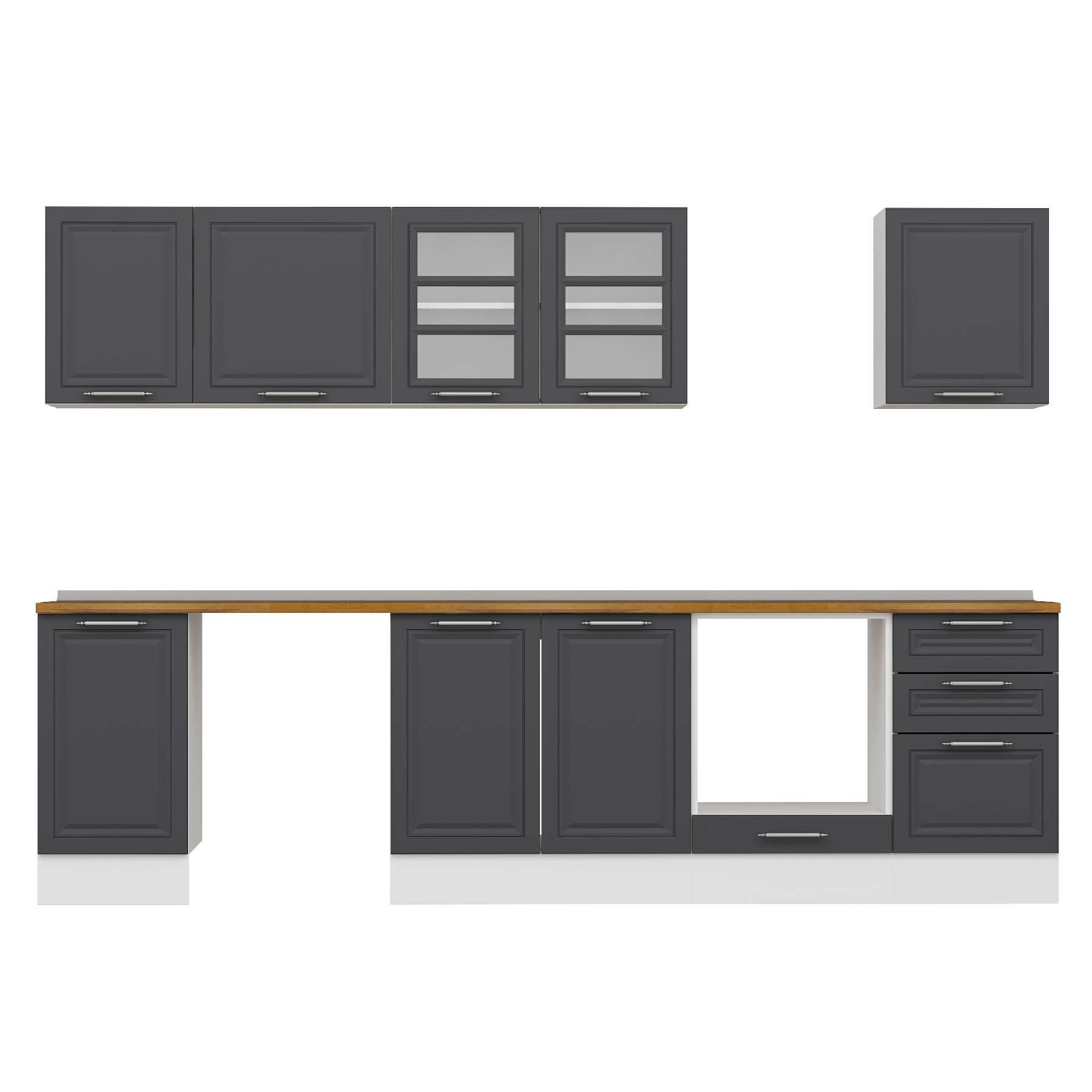 Alvinka 295X210 Cm Klasik Mebran Mutfak Dolabı M-E80S45S50-3 Mebran | Antrasit - Mdf