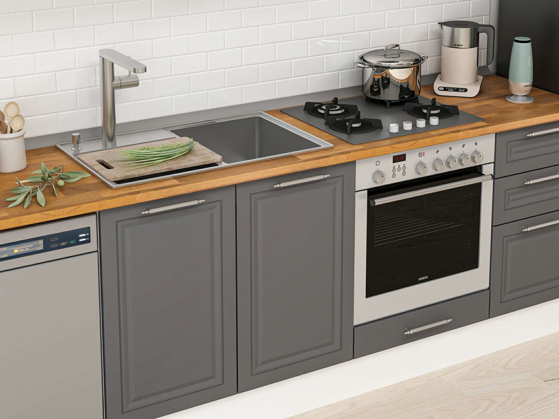 Alvinka 295X210 Cm Klasik Mebran Mutfak Dolabı M-E80S50S45-2 Mebran | Antrasit - Mdf