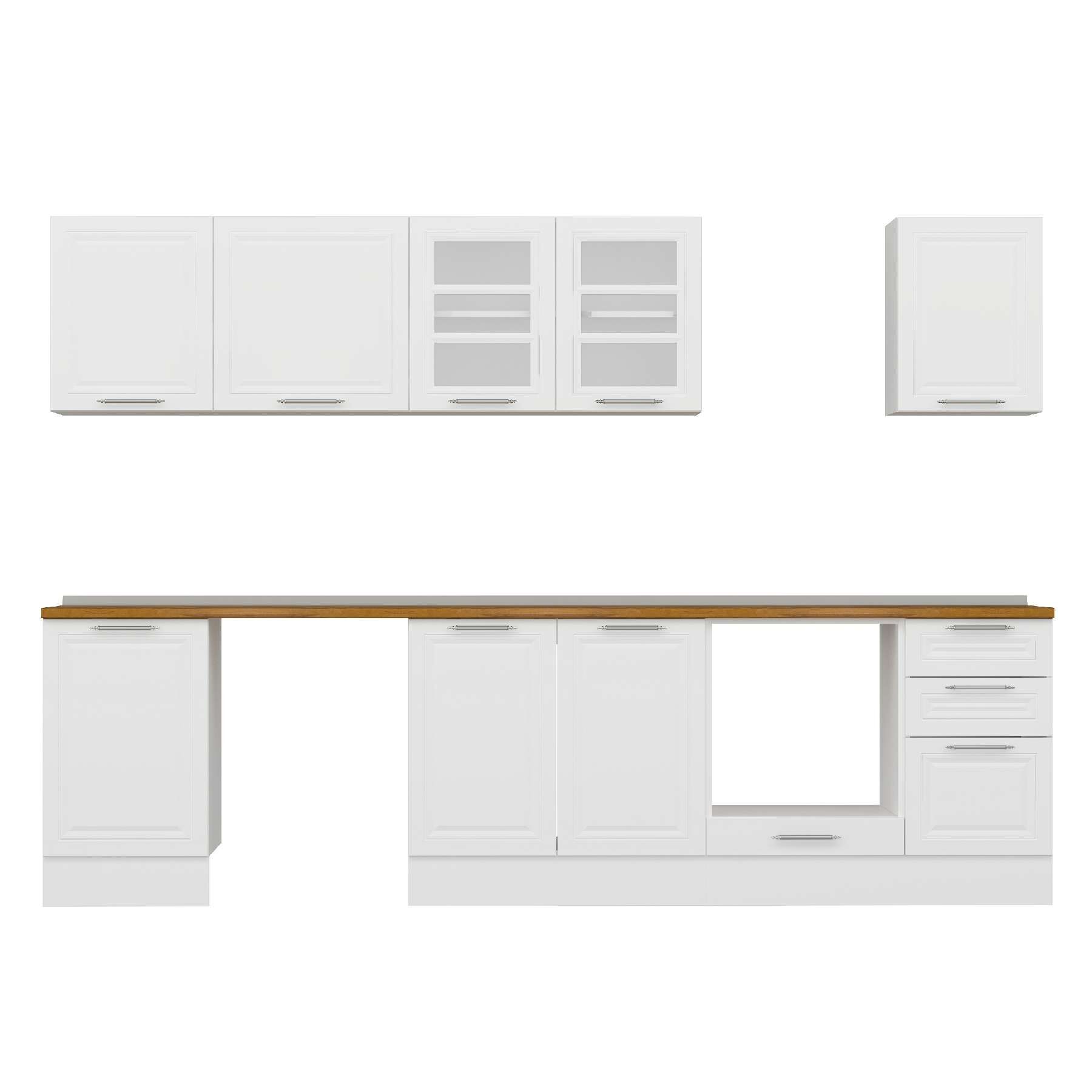 Alvinka 295X210 Cm Klasik Mebran Mutfak Dolabı M-E80S50S45-3 Mebran | Beyaz - Suntalam