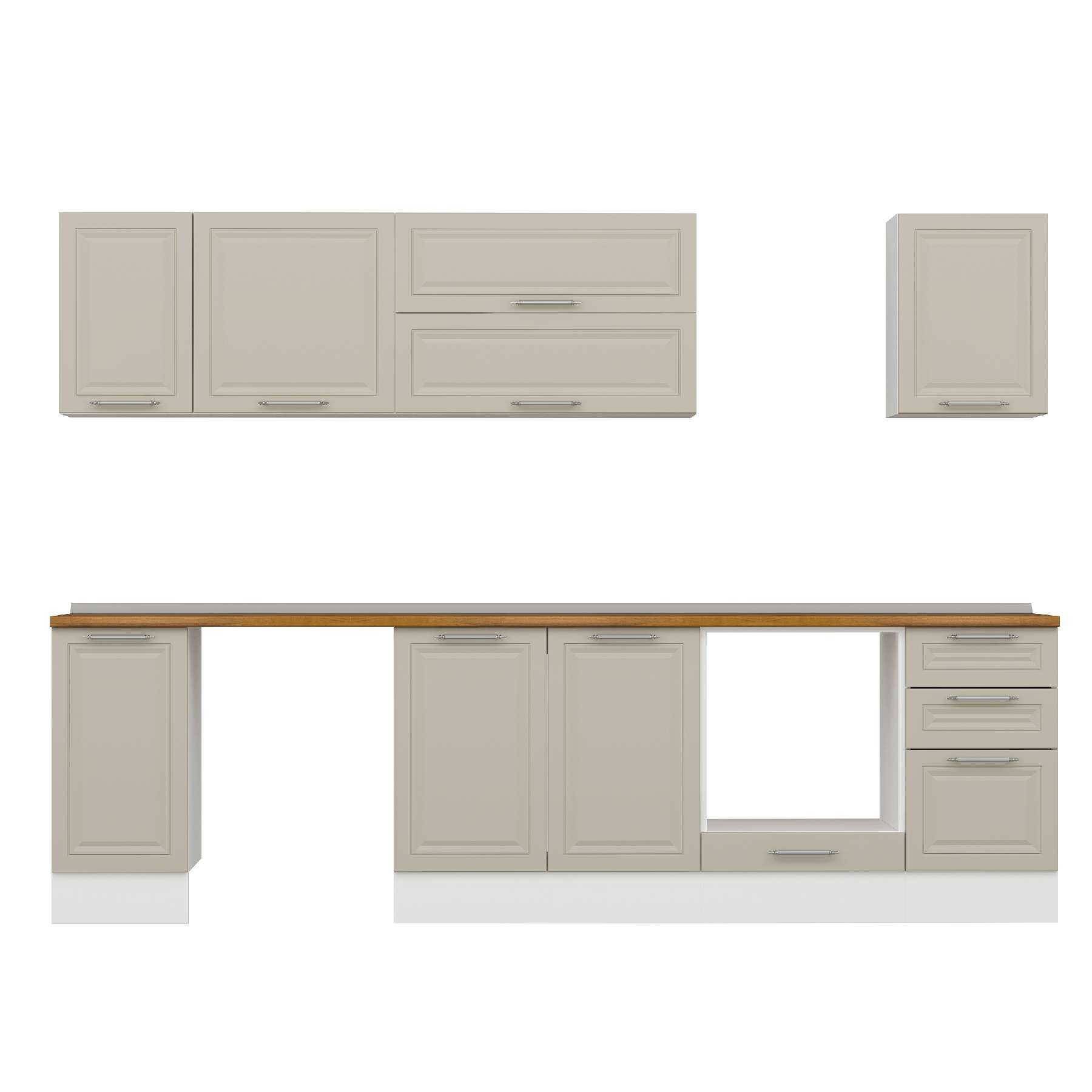 Alvinka 295X210 Cm Klasik Mebran Mutfak Dolabı M-E90S40S45-2 Mebran | Kumtaşı - Mdf