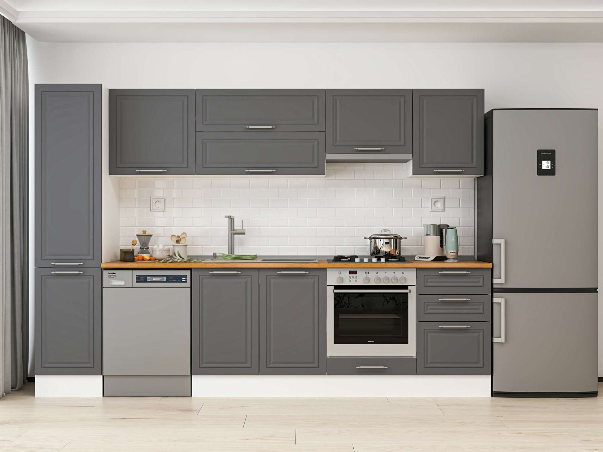 Alvinka 295X210 Cm Klasik Mebran Mutfak Dolabı Mb-E80B45S50-1 Mebran | Antrasit - Suntalam