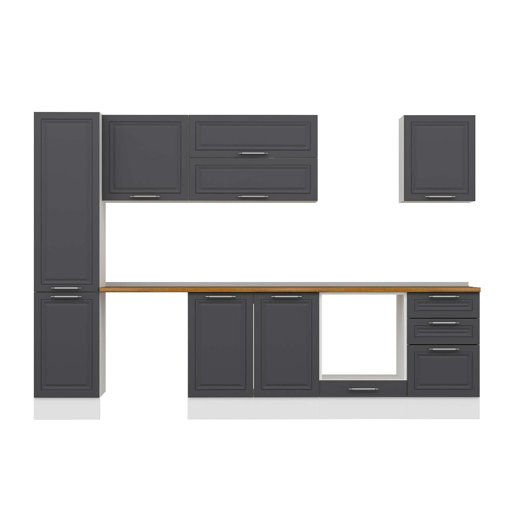 Alvinka 295X210 Cm Klasik Mebran Mutfak Dolabı Mb-E80B45S50-2 Mebran | Antrasit - Mdf