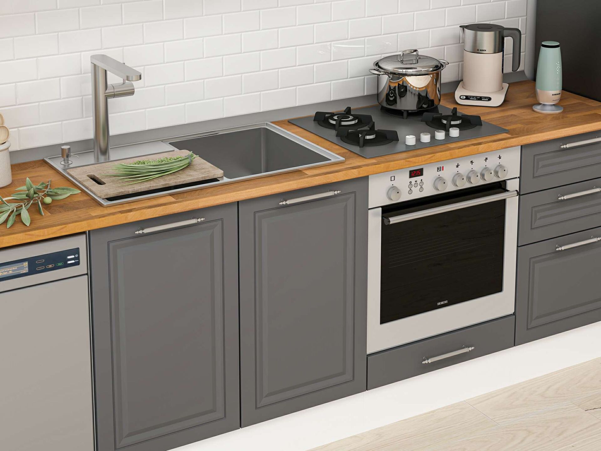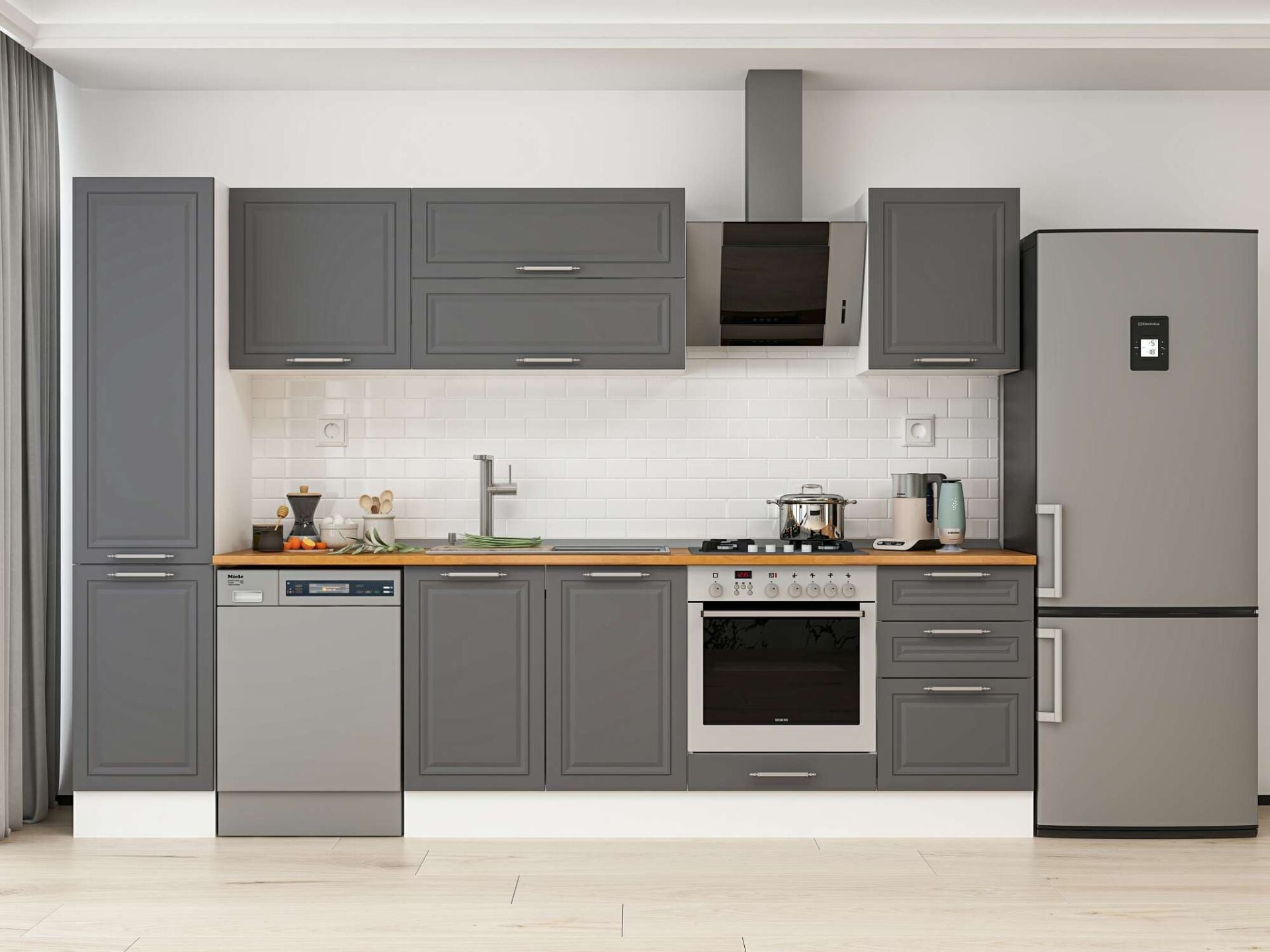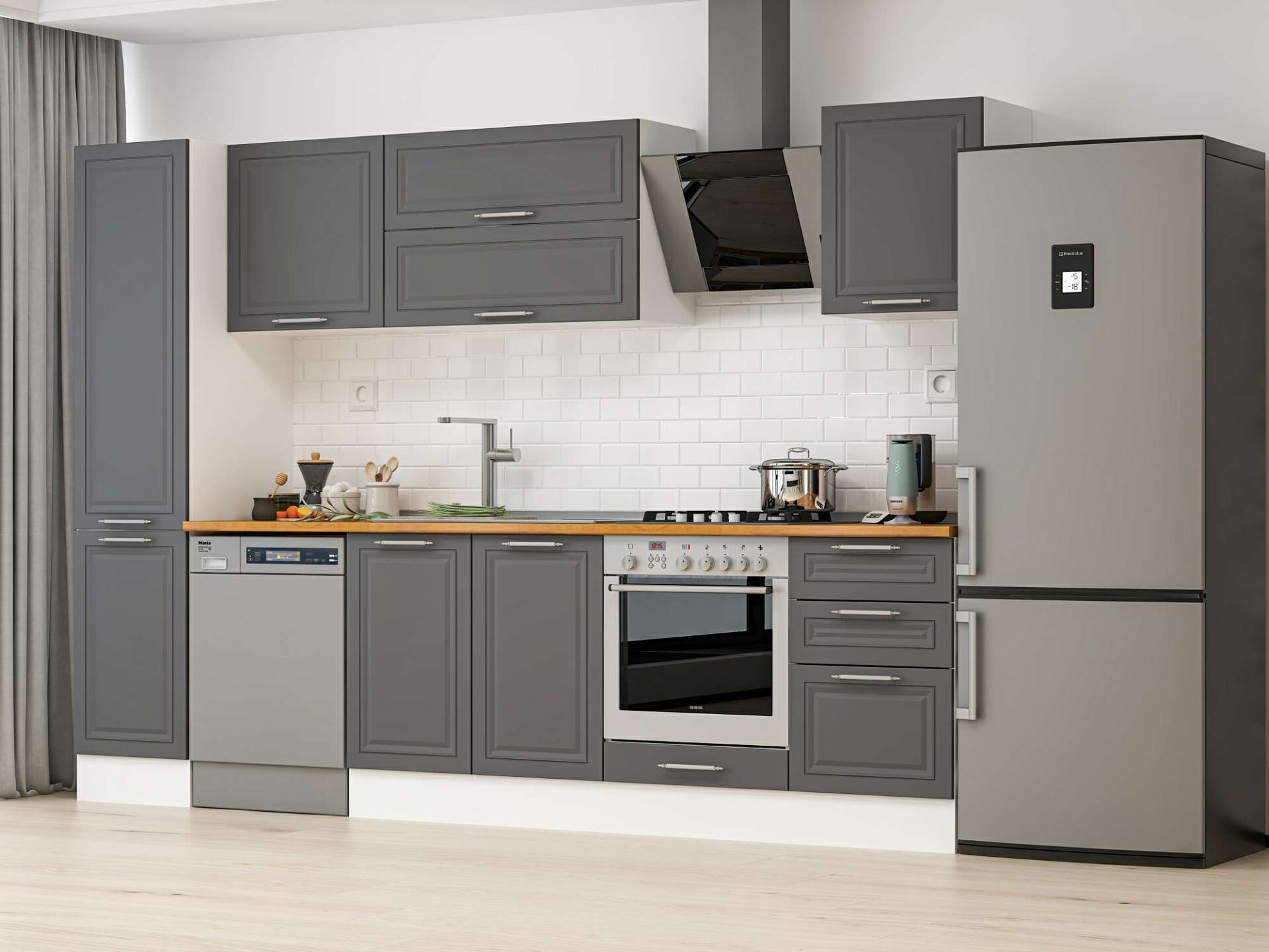 Alvinka 295X210 Cm Klasik Mebran Mutfak Dolabı Mb-E80B45S50-2 Mebran | Antrasit - Suntalam
