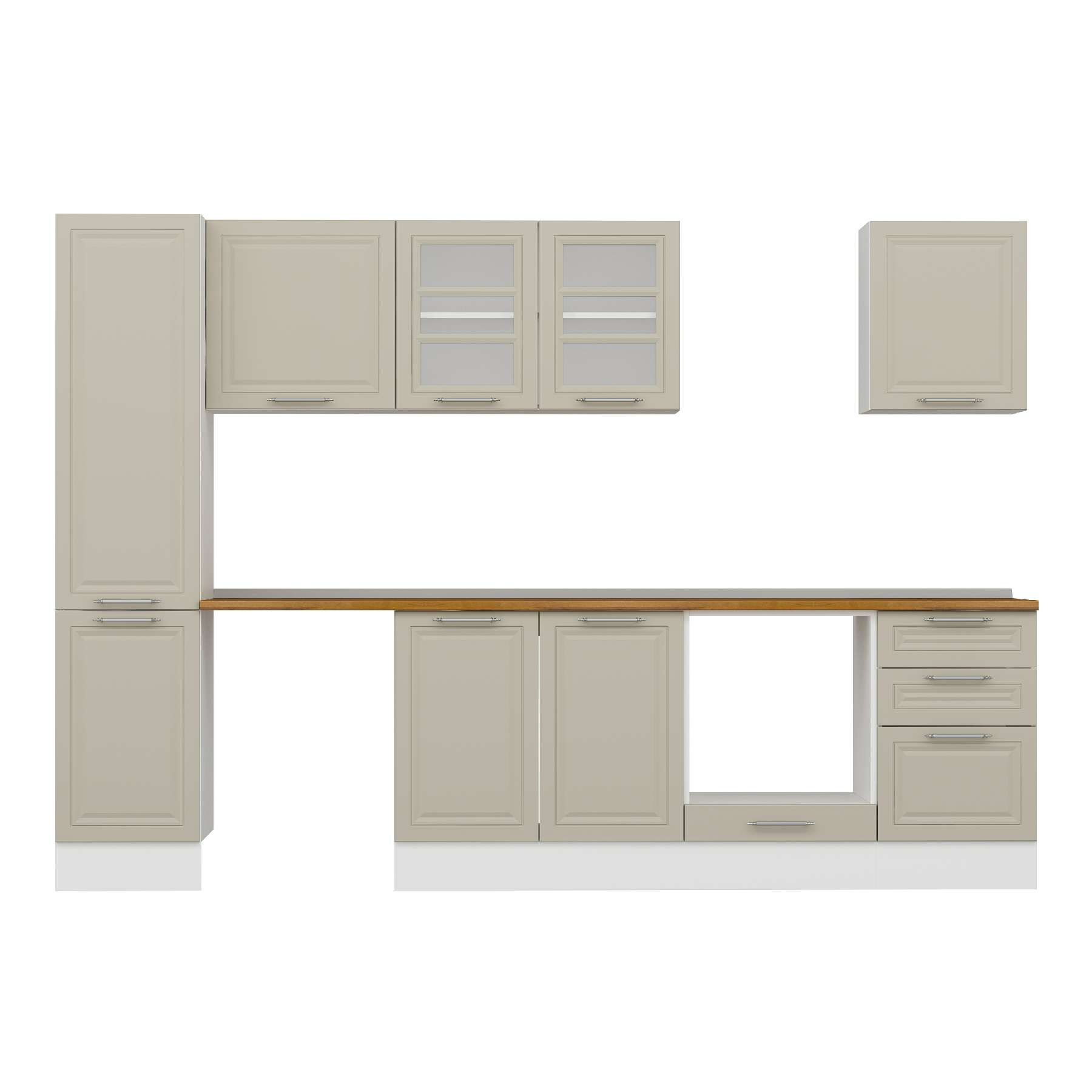 Alvinka 295X210 Cm Klasik Mebran Mutfak Dolabı Mb-E80B45S50-3 Mebran | Kumtaşı - Mdf