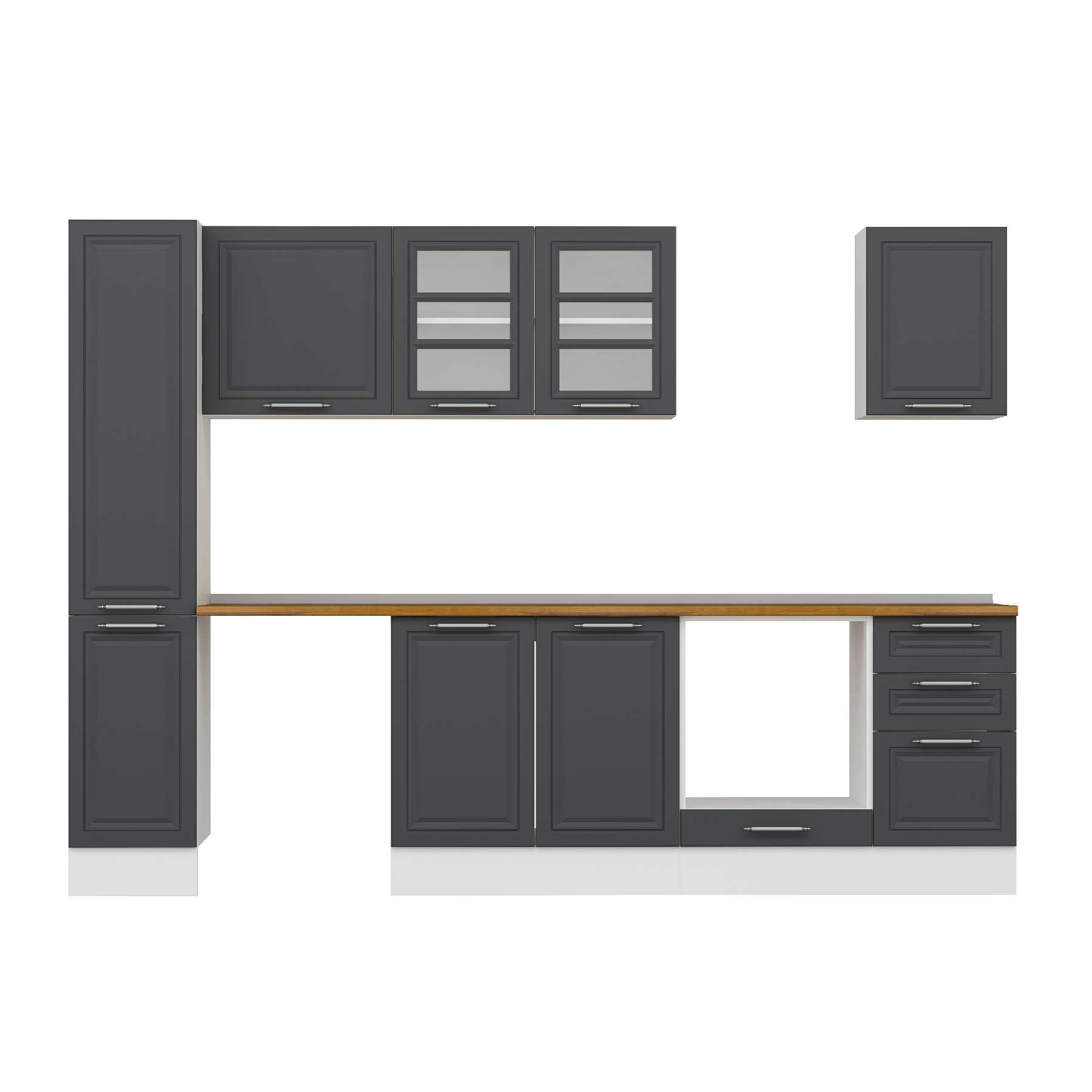 Alvinka 295X210 Cm Klasik Mebran Mutfak Dolabı Mb-E90B40S45-3 Mebran | Antrasit - Mdf