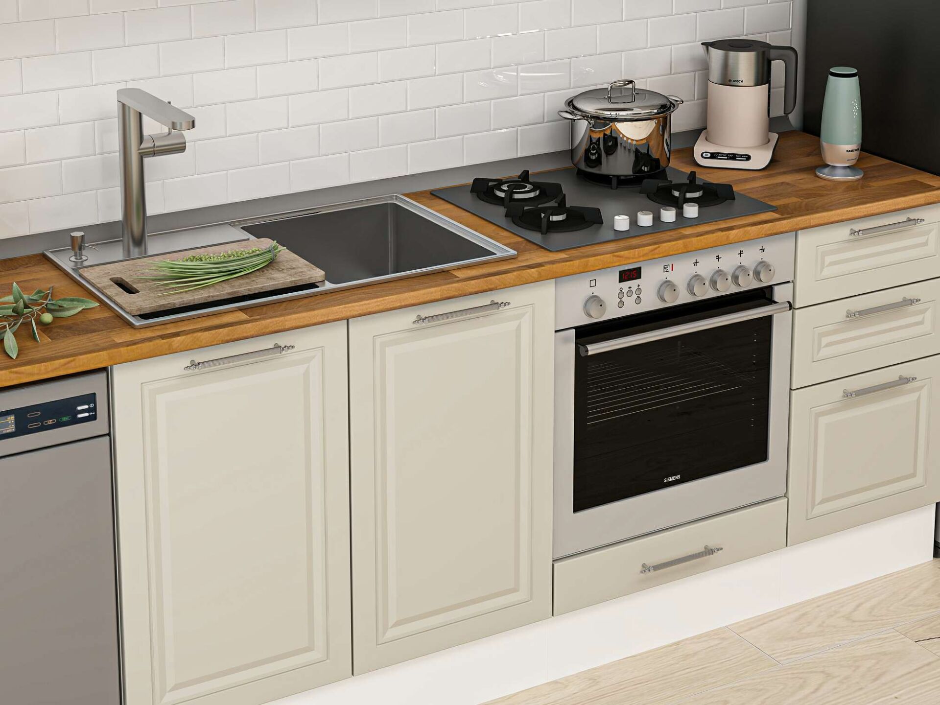 Alvinka 295X210 Cm Klasik Mebran Mutfak Dolabı Mb-E90B40S45-3 Mebran | Kumtaşı - Suntalam