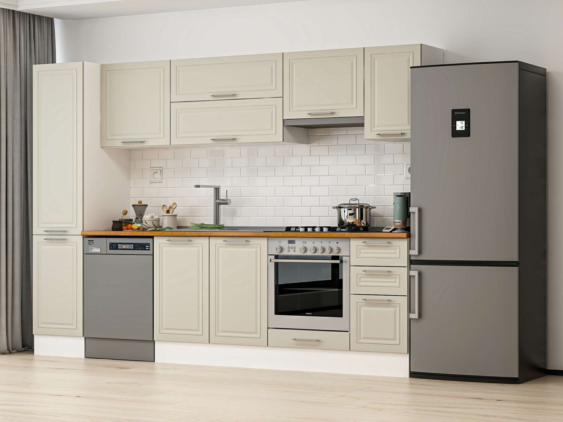Alvinka 295X210 Cm Klasik Mebran Mutfak Dolabı Mb-E90B45S40-1 Mebran | Kumtaşı - Mdf