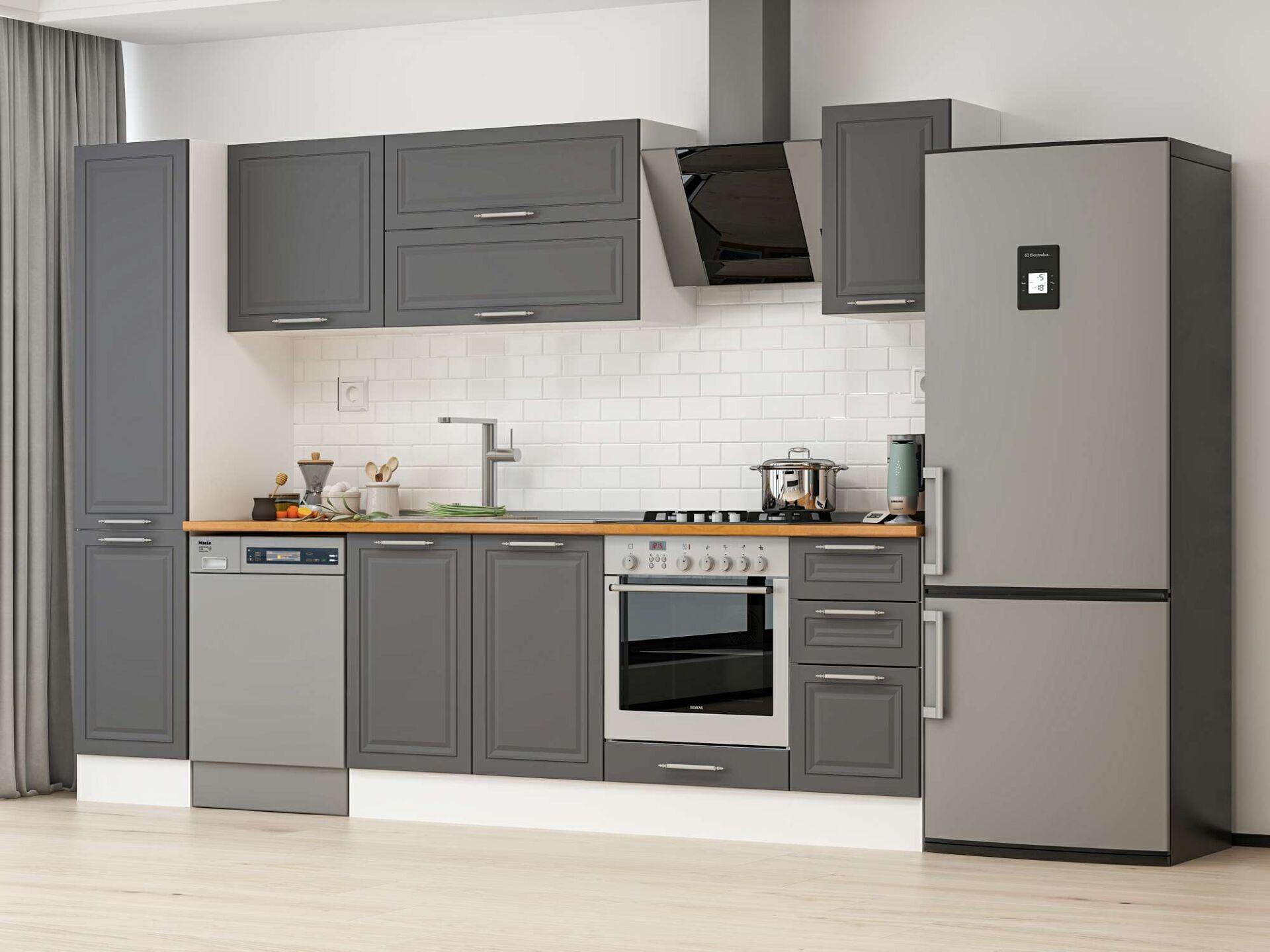 Alvinka 295X210 Cm Klasik Mebran Mutfak Dolabı Mb-E90B45S40-2 Mebran | Antrasit - Mdf