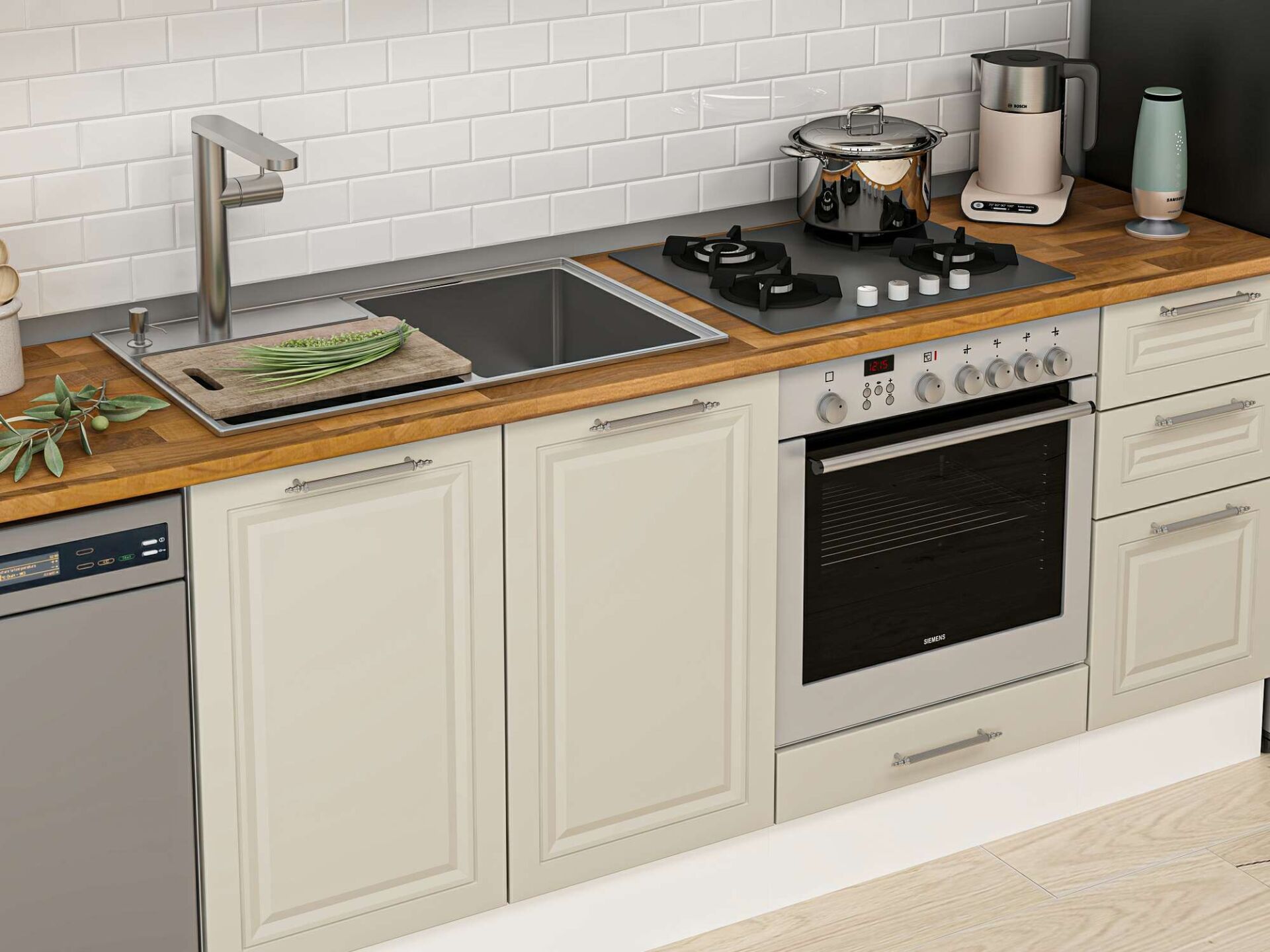 Alvinka 295X210 Cm Klasik Mebran Mutfak Dolabı Mb-E90B45S40-2 Mebran | Kumtaşı - Mdf