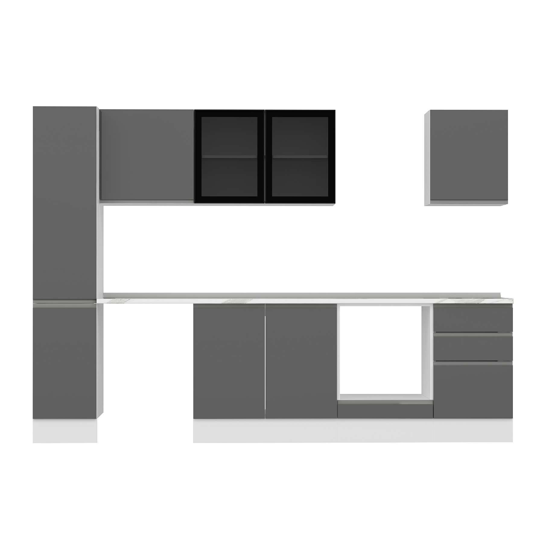 Alvinka 300X210 Cm High Gloss Mutfak Dolabı Mb-E90B40S50-3 High Gloss | Antrasit - Suntalam