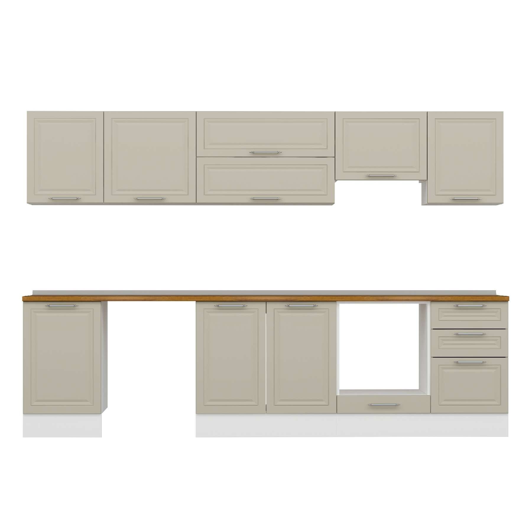 Alvinka 300X210 Cm Klasik Mebran Mutfak Dolabı M-E80S50S50-1 Mebran | Kumtaşı - Mdf