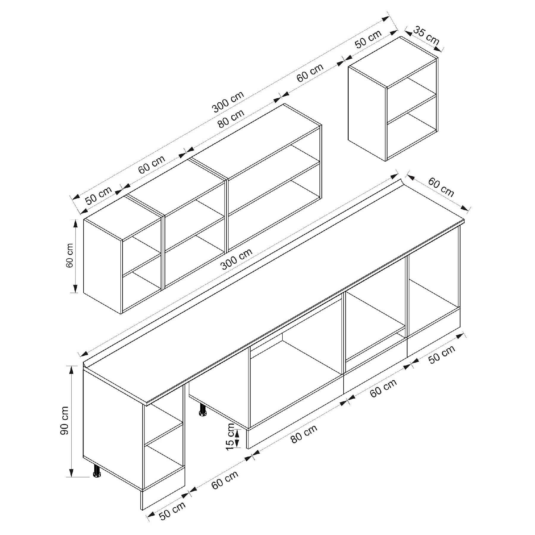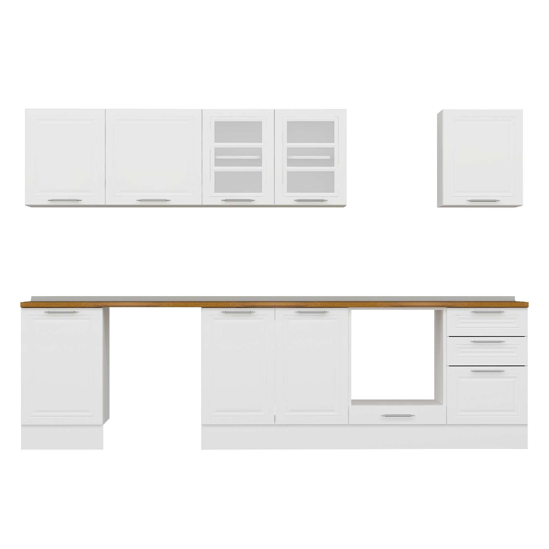 Alvinka 300X210 Cm Klasik Mebran Mutfak Dolabı M-E80S50S50-3 Mebran | Beyaz - Mdf