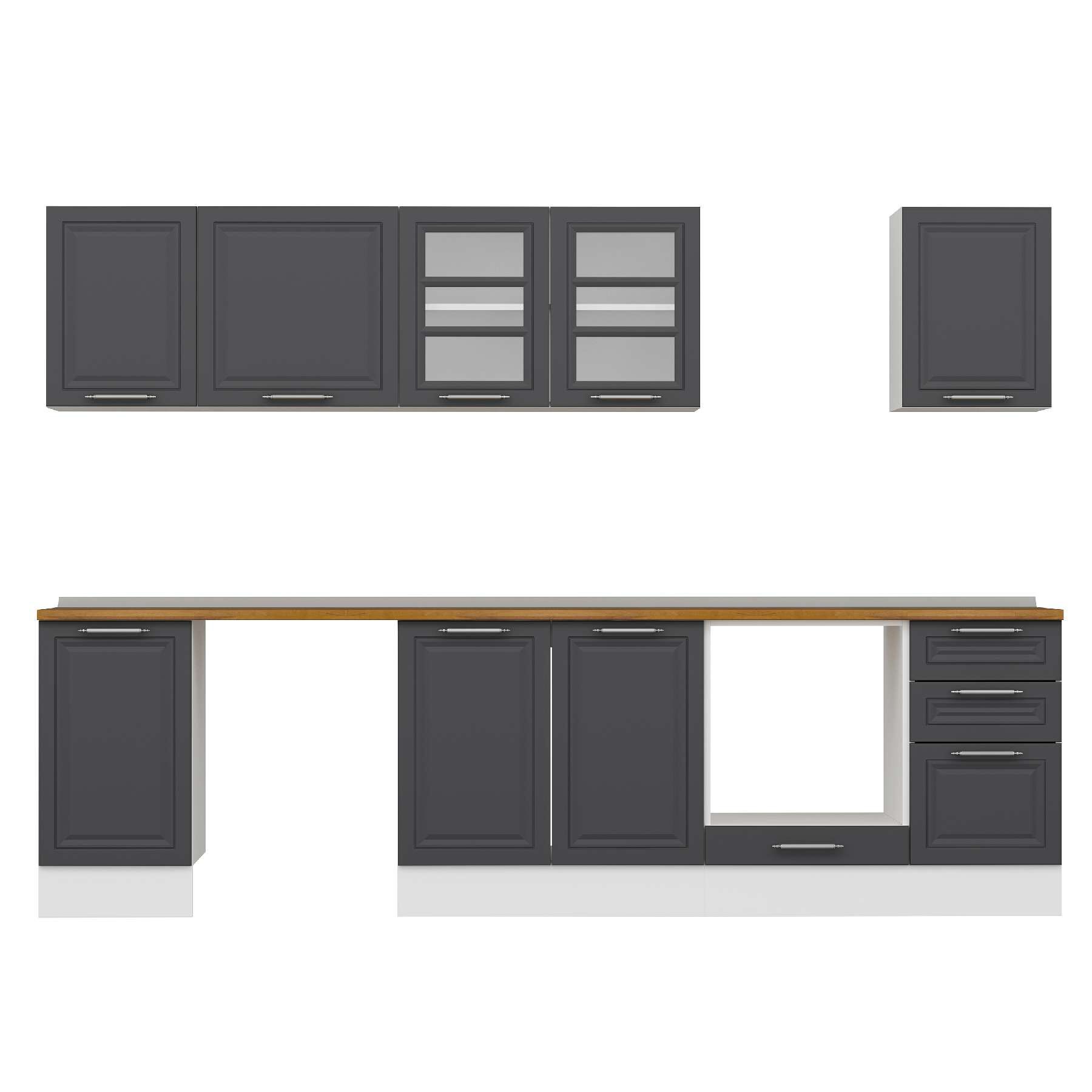 Alvinka 300X210 Cm Klasik Mebran Mutfak Dolabı M-E90S45S45-3 Mebran | Antrasit - Suntalam