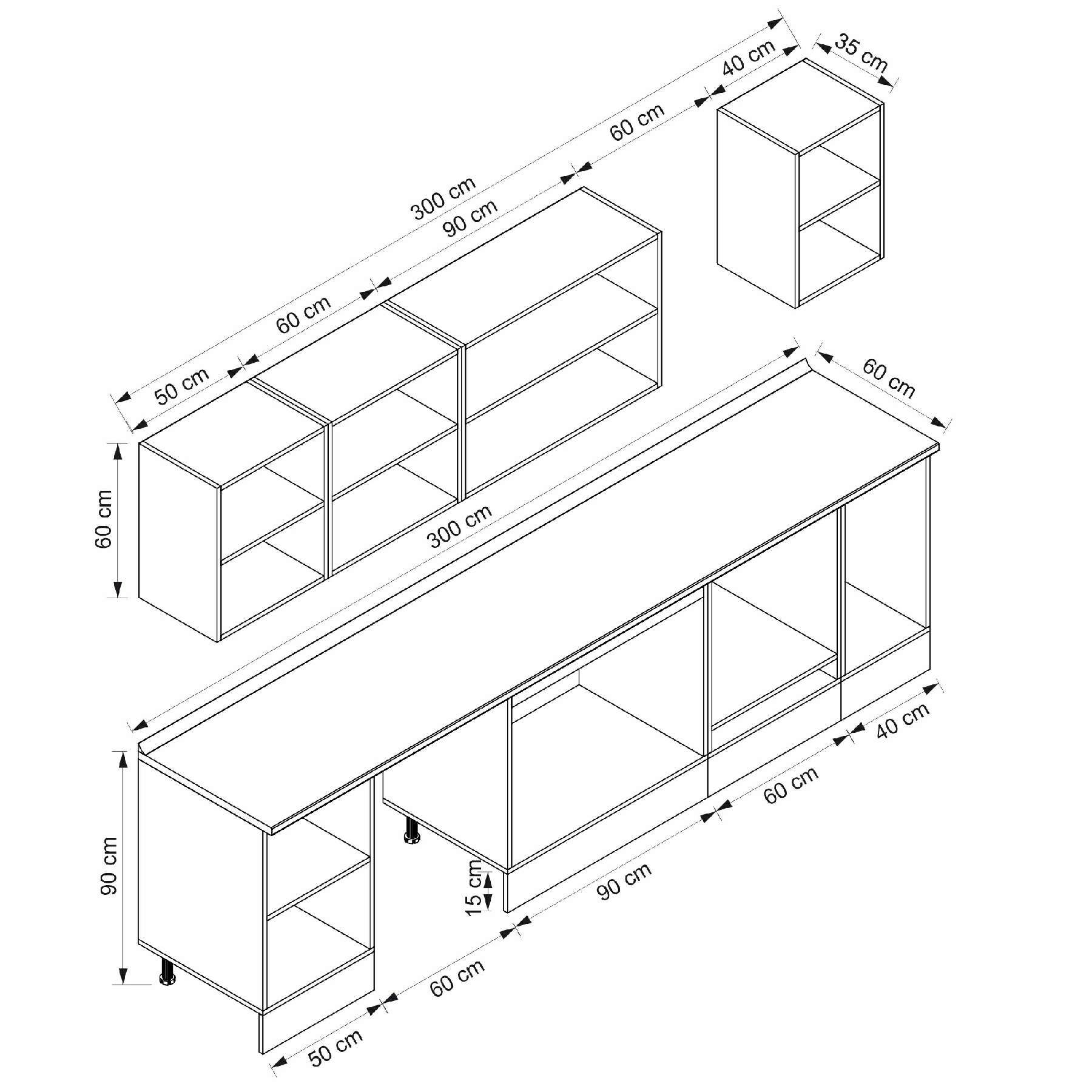 Alvinka 300X210 Cm Klasik Mebran Mutfak Dolabı M-E90S50S40-3