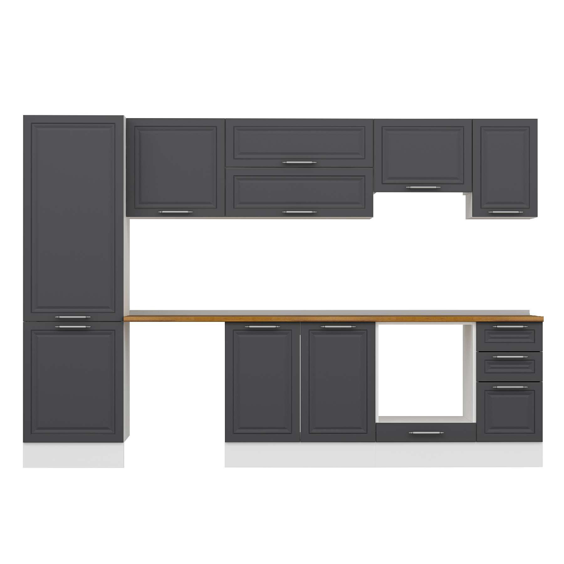 Alvinka 300X210 Cm Klasik Mebran Mutfak Dolabı Mb-E80B60S40-1 Mebran | Antrasit - Suntalam