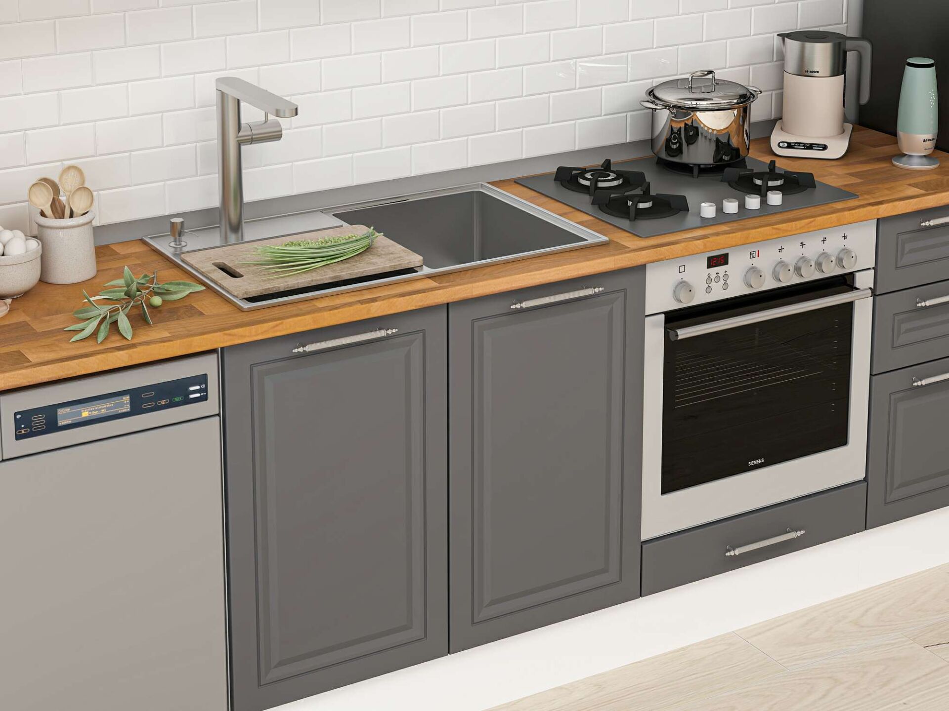 Alvinka 300X210 Cm Klasik Mebran Mutfak Dolabı Mb-E80B60S40-2 Mebran | Antrasit - Suntalam