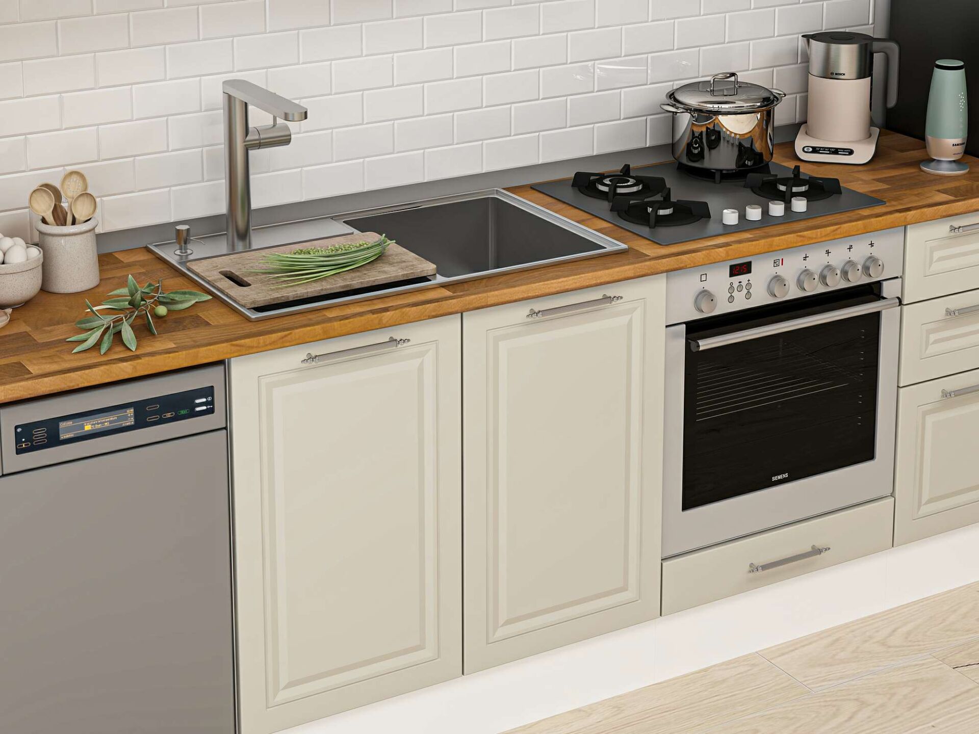 Alvinka 300X210 Cm Klasik Mebran Mutfak Dolabı Mb-E80B60S40-2 Mebran | Kumtaşı - Suntalam