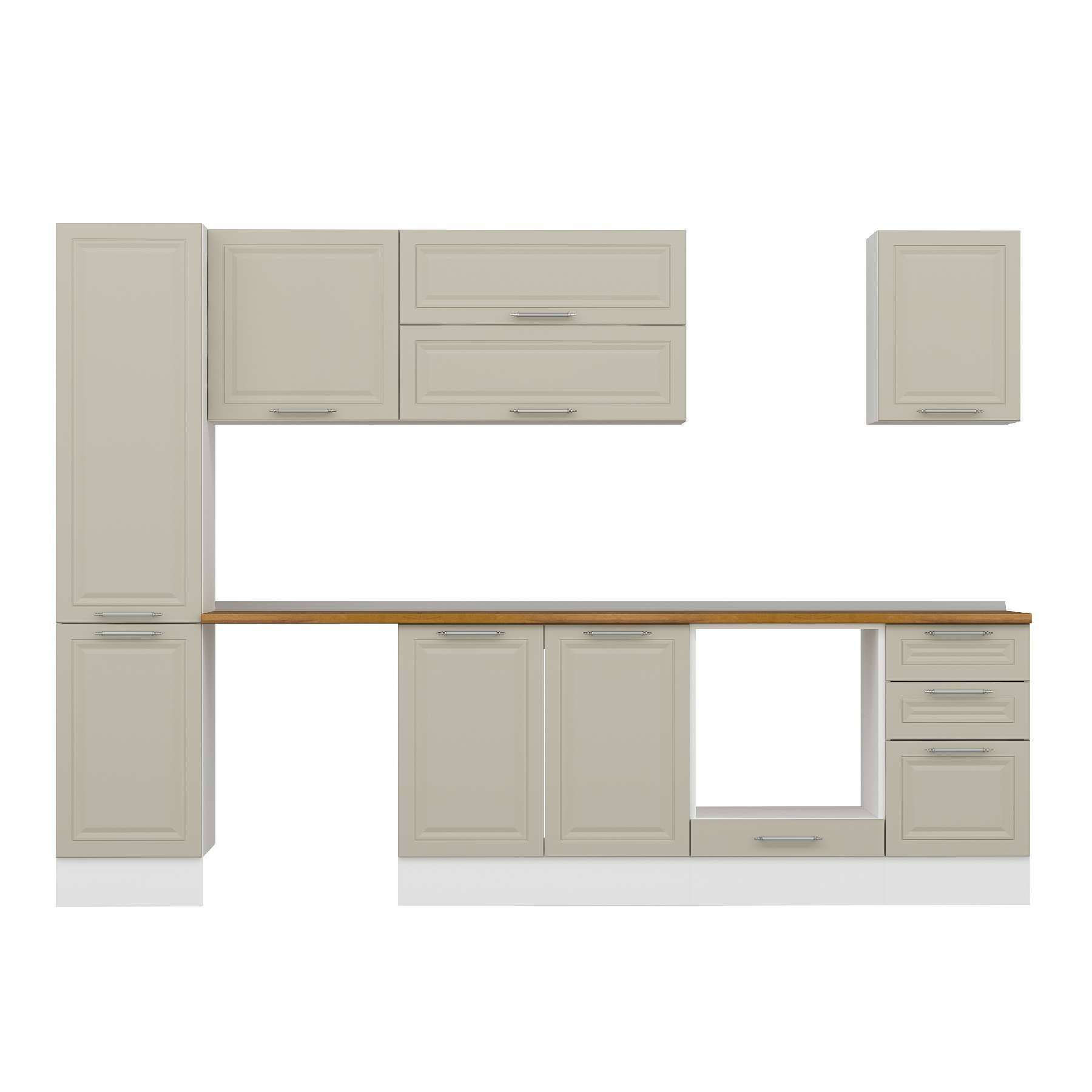 Alvinka 300X210 Cm Klasik Mebran Mutfak Dolabı Mb-E90B45S45-2 Mebran | Kumtaşı - Mdf