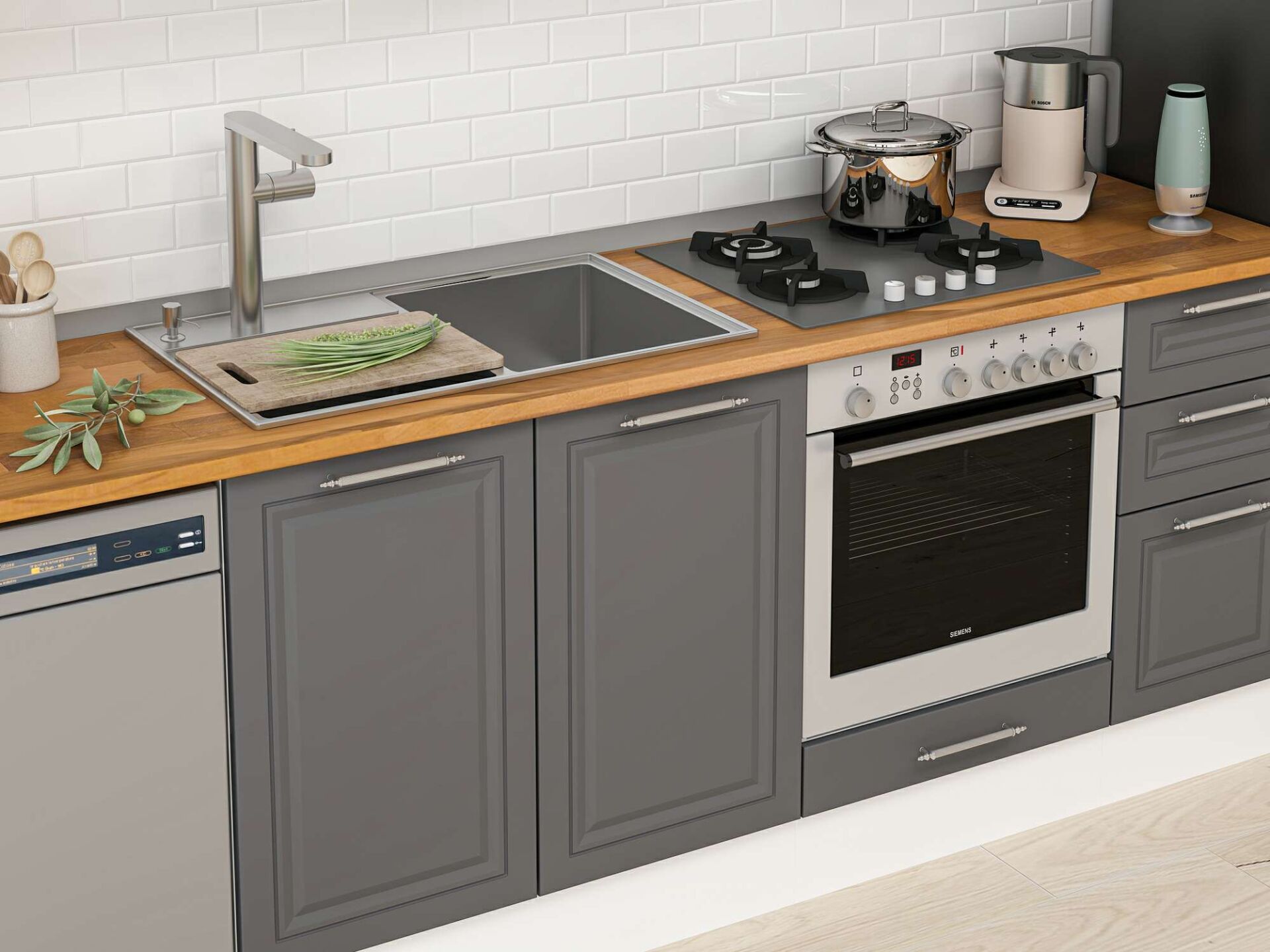 Alvinka 300X210 Cm Klasik Mebran Mutfak Dolabı Mb-E90B50S40-2 Mebran | Antrasit - Suntalam