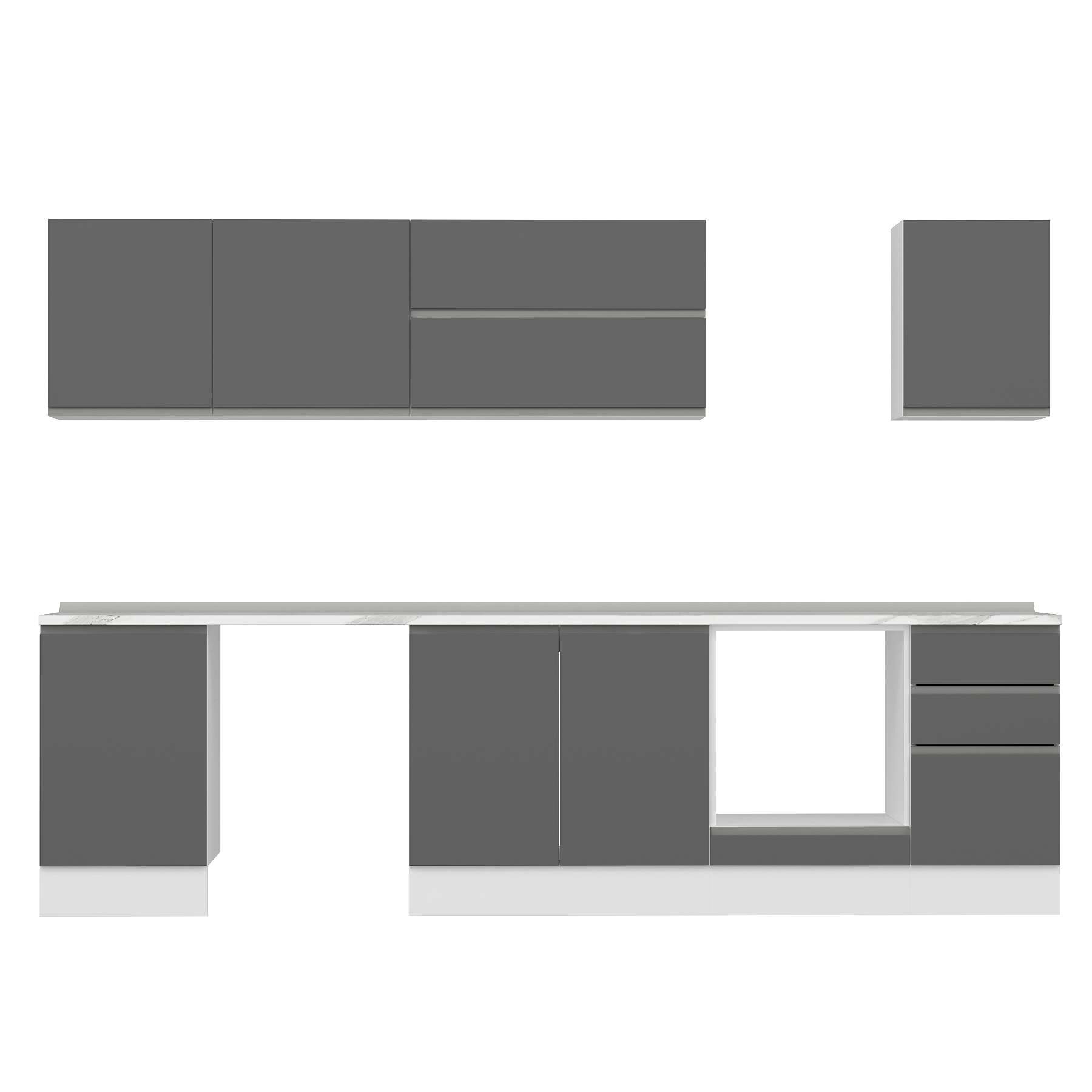 Alvinka 305X210 Cm High Gloss Mutfak Dolabı M-E90S50S45-2 High Gloss | Antrasit - Mdf