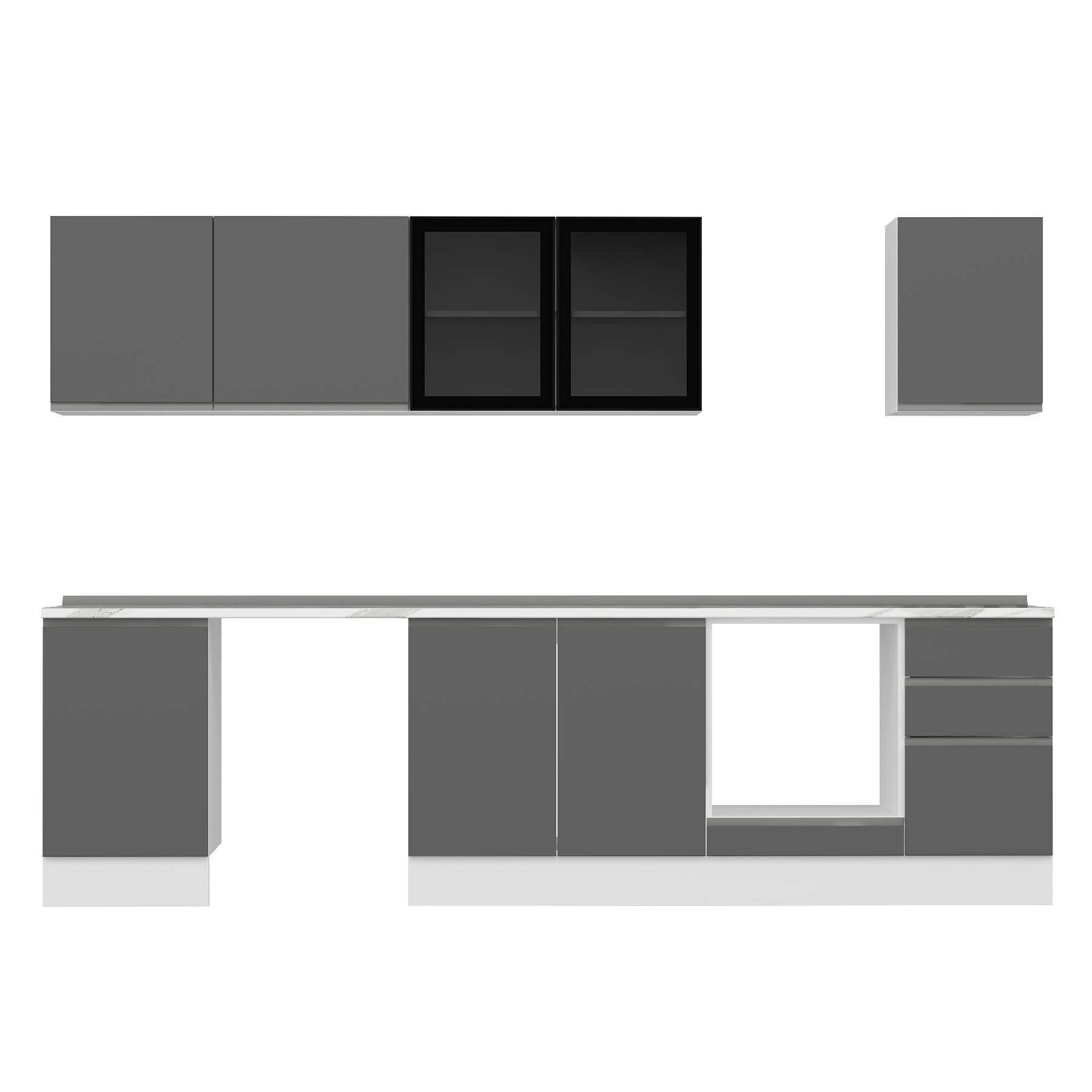 Alvinka 305X210 Cm High Gloss Mutfak Dolabı M-E90S50S45-3 High Gloss | Antrasit - Suntalam