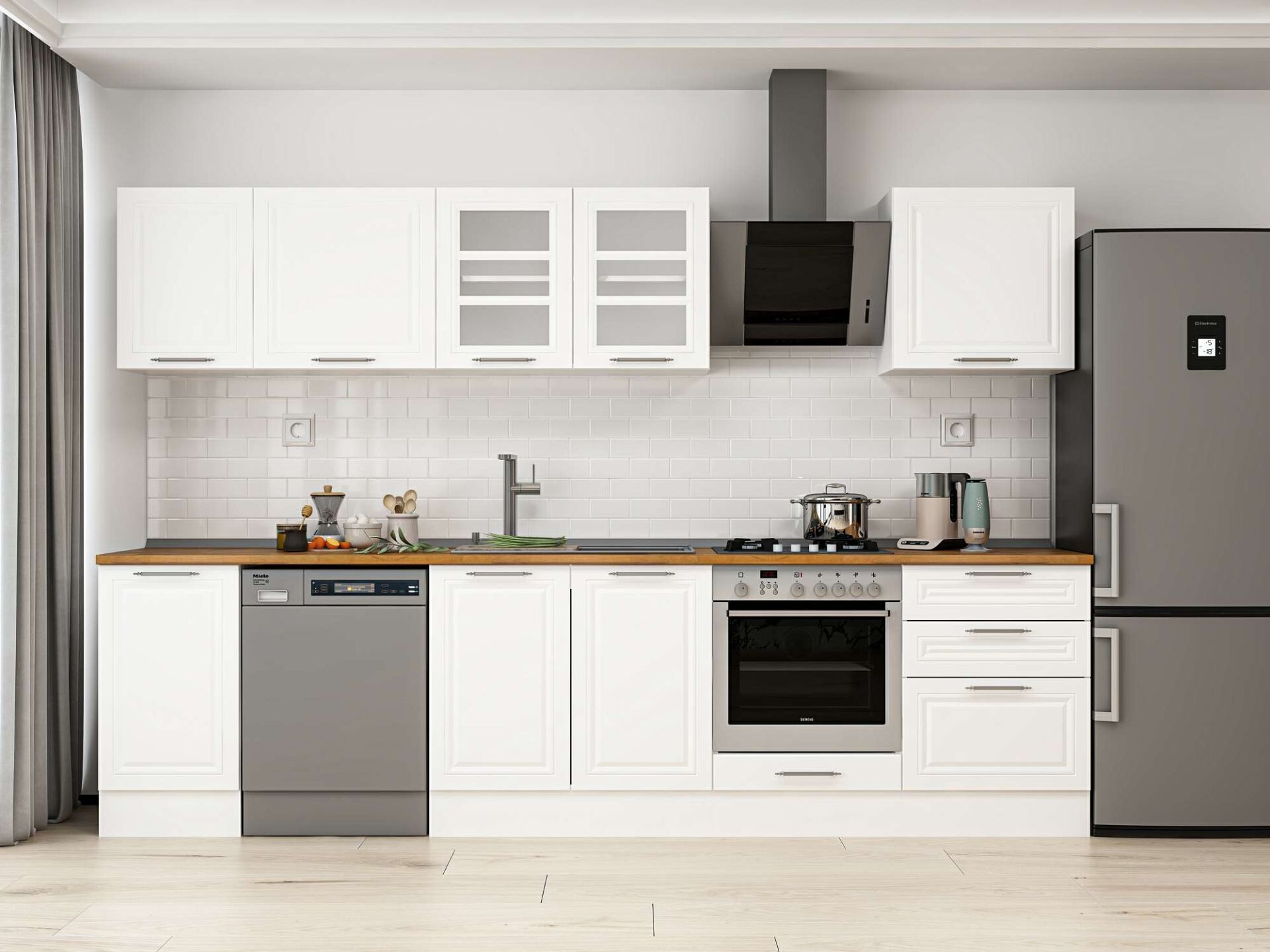 Alvinka 305X210 Cm Klasik Mebran Mutfak Dolabı M-E80S45S60-3 Mebran | Beyaz - Suntalam